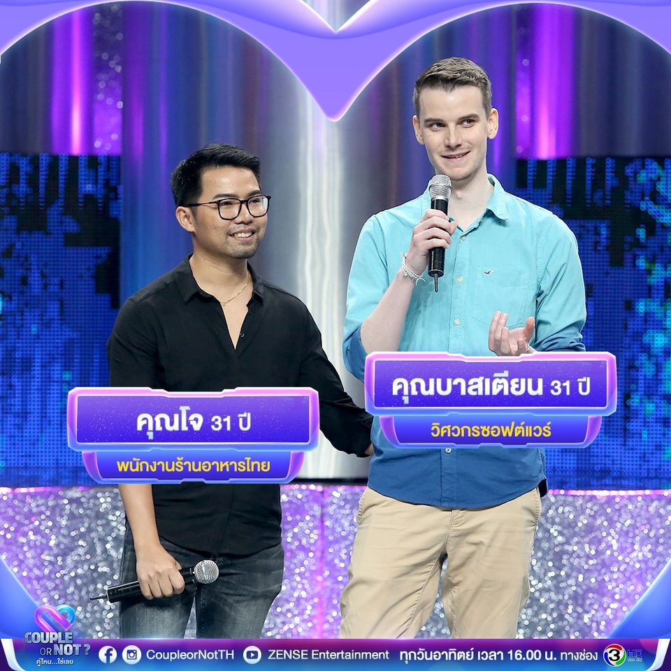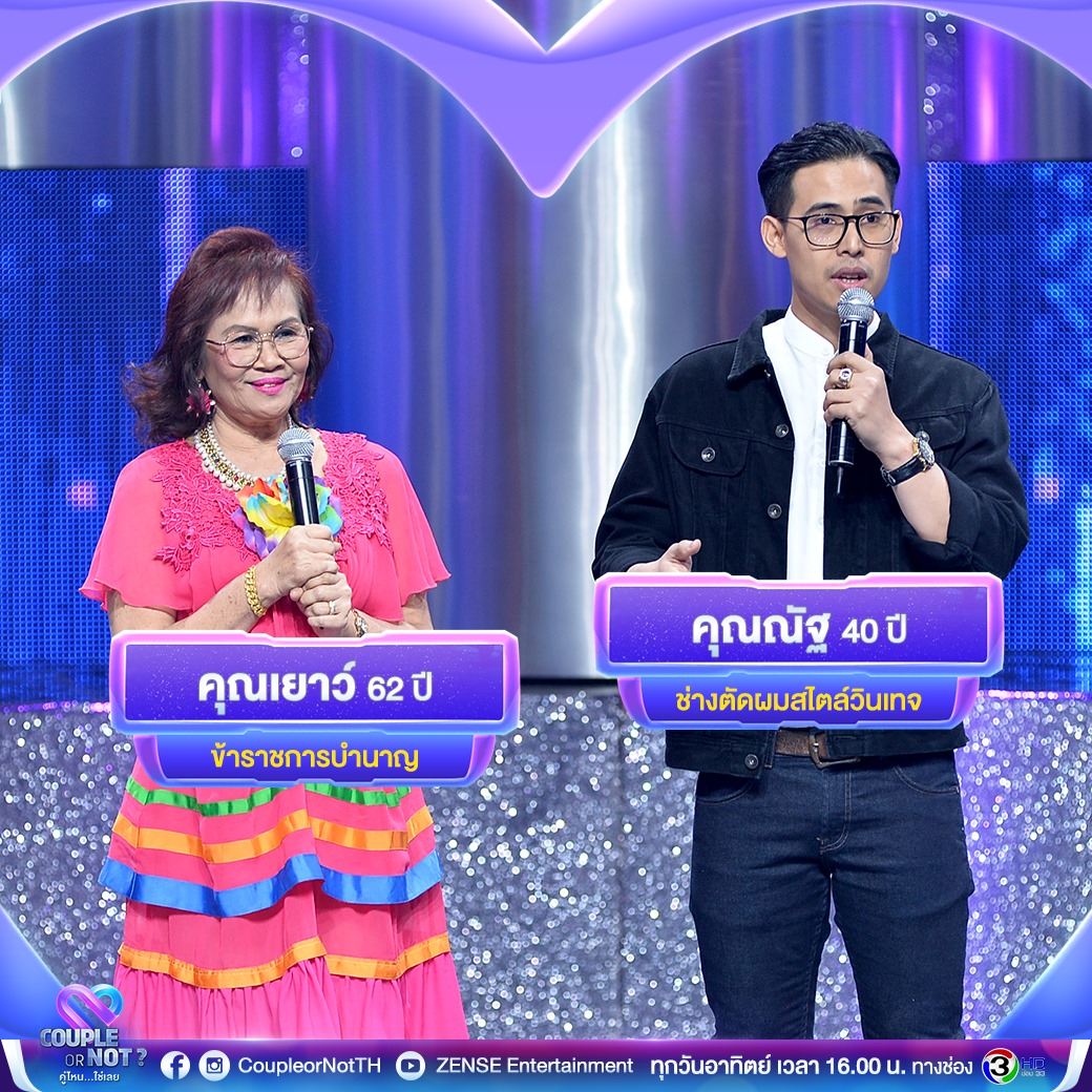 ติดตามเรื่องราวความรักและความอบอุ่นที่น่าประทับใจแบบไม่จำกัดรูปแบบได้ใน รายการ Couple or not คู่ไหน…ใช่เลย ทุกวันอาทิตย์ เวลา 16.00 น. ทาง ช่อง 3HD ช่อง 33