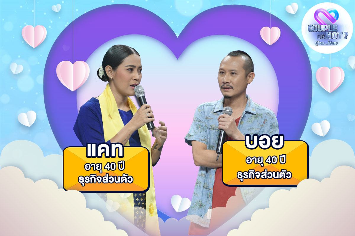 เรียกว่าเป็นคู่รัก คู่หวานเอยเตยหอมมากๆ สำหรับคู่รักนักแสดง อย่างคู่ของพระเอกหนุ่ม “เพ็ชร – ฐกฤต ตวันพงค์” ที่ควงแฟนสาว “มายด์ – ฑาริกา อินสุวรรณ์” ร่วมเล่นเกมตามหาคู่รักตัวจริง รายการ Couple or Not คู่ไหน…ใช่เลย สัปดาห์นี้ แต่ก่อนจะเริ่มเล่นเกมใดๆ บอกได้เลยว่า คู่นี้เป็นคู่ที่ทำให้ 2 พิธีกรสุดแซ่บของรายการ “นุ้ย – ธนวัฒน์ ประสิทธิสมพร” และ “ต้นหอม – ศกุนตลา เทียนไพโรจน์” ถึงกับต้องขอน้ำเพื่อดับไฟร้อนที่ตาตัวเอง เพราะเจอภาพความหวานของ “เพ็ชร – มายด์” แสดงฤทธิ์เดชเข้าให้
