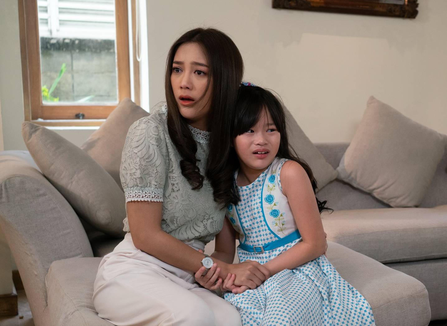 เจอแขกไม่ได้รับเชิญเข้า วันนี้แม่-ลูกเลยต้องผนึกกำลังกันสู้ผี หลังซ้อมคิวทำอารมณ์เสร็จ ผู้กำกับฯ “แดง บูรพา” ก็จัดการถ่ายทำ นาทีที่เกิดเสียงปึงปังแบบไม่รู้ที่มา “แม็กกี้” กับ “ณิริน” ก็ตกใจหน้าตาตื่น แบบไม่ได้นัดหมาย ร้องไห้ผวากอดกันกลม แล้ว “แม็กกี้” ก็ถาม “ณิริน” ว่าใช่พี่ตุ๊กตามั้ย? พอคำตอบ คือ…ไม่ใช่ เท่านั้นแหละทั้งคู่กอดกันแน่นกว่าเดิม แล้วผีก็โผล่หน้ามาขนาบข้าง “แม็กกี้” ยังไม่กล้าแม้แต่จะเหลียวมอง ส่วน “ณิริน” นี่ปล่อยโฮตัวสั่นกลัวจริงจังน้ำตาไหลพราก พอสิ้นเสียงคัท “แม็กกี้” ยังต้องกอดปลอบ “ณิริน” อยู่นาน