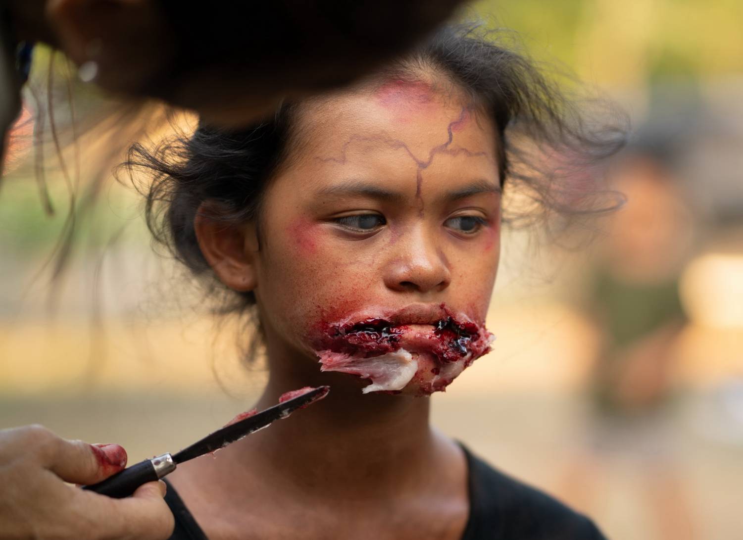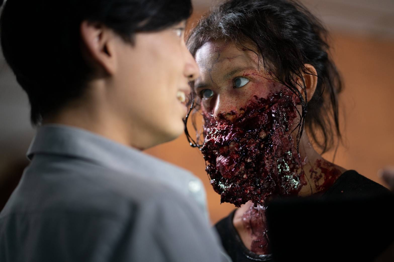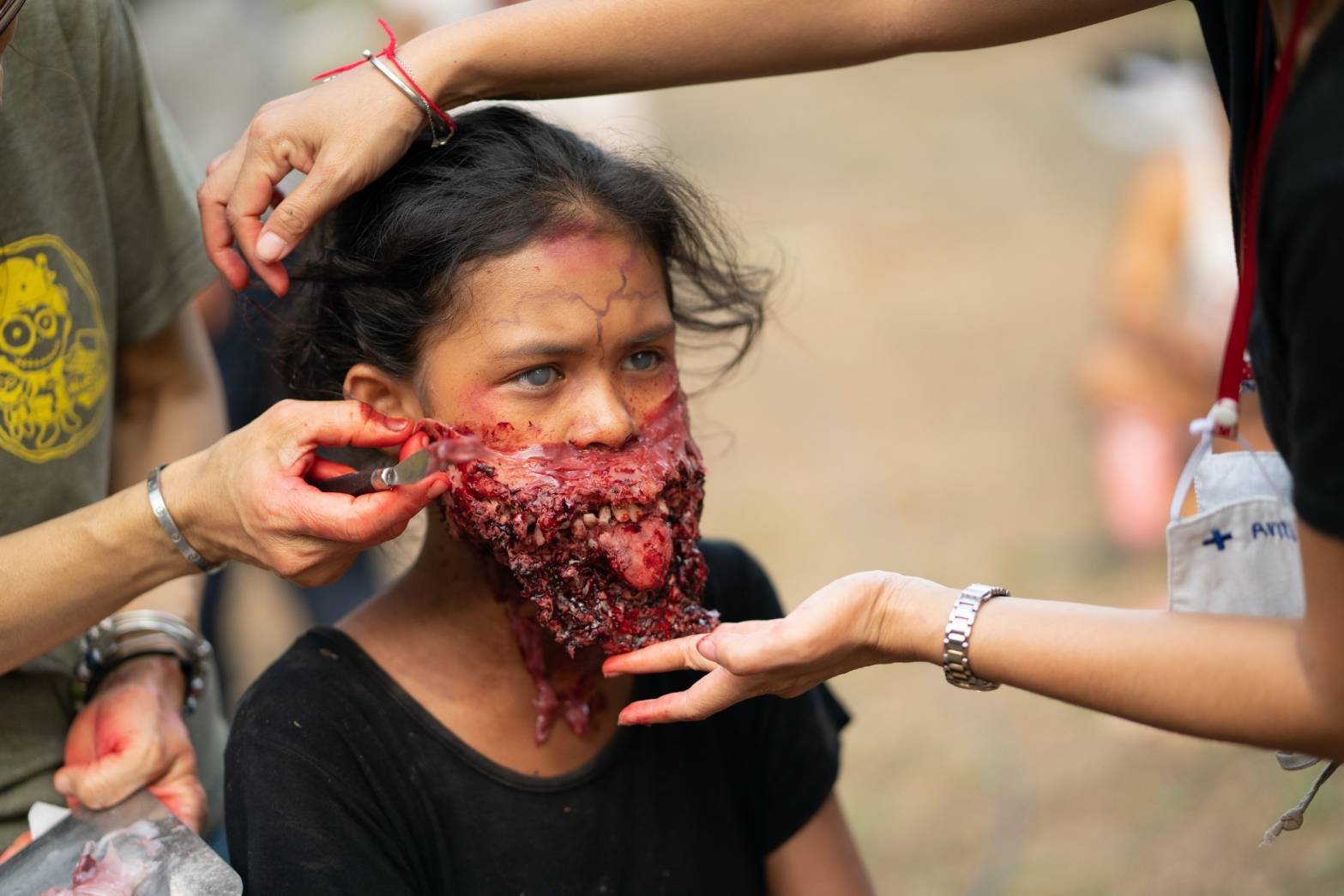ฝั่ง “พี่ตุ๊กตา” ก็สยองไม่แพ้กัน นาง (ป่าน ปานชีวา มนต์สิริ) วิญญาณที่สิงในตุ๊กตาวันนี้แต่งหน้าเอฟเฟกต์รอเข้าฉากตั้งแต่เช้าตรู่กว่าจะสยอง เอ๊ย! กว่าจะเสร็จสมบูรณ์ด้วยฝีมือ “หนึ่ง” ศิริรัตน์ แจ่มฟ้า ช่างแต่งหน้าเอฟเฟกต์แถวหน้าของเมืองไทยที่สะบัดแปรงไปเกือบ 5 ชั่วโมง และฉากนี้วัดใจนักแสดงน้องใหม่ “ยู้ฮู ณัฐดนัย ชัยภูมิ” ลูกชายสุดที่เลิฟของพิธีกรลูกทุ่งคนดัง “นก บริพันธ์” ที่รับบทเด็กดูแลโรงงานตุ๊กตานรกให้ คุณนายสมร (เปิ้ล จารุณี) เข้าฉากปุ๊บก็สยองปั๊บ ป๊ะหน้ากับผีนางกันเลย อินเนอร์สะพรึงแรงแค่ไหน รอลุ้น!!