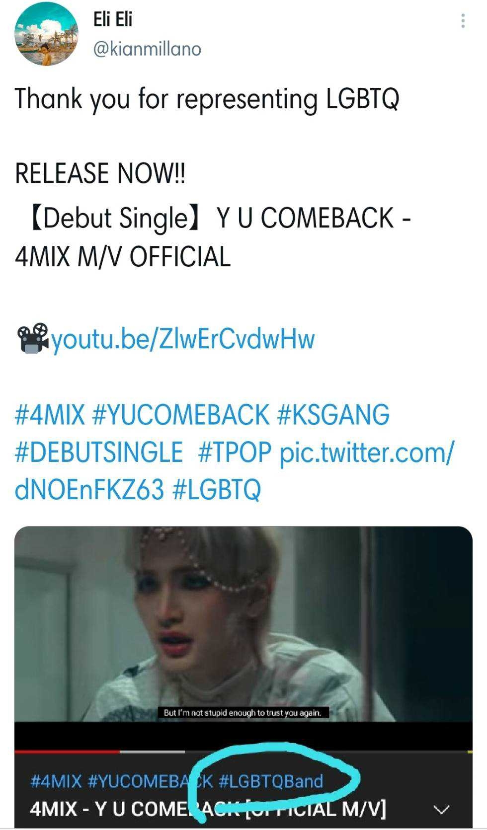 เพิ่งปล่อยเพลงเดบิวต์ไปไม่กี่วัน สำหรับวงน้องใหม่ 4MIX ที่ได้ชื่อว่าเป็นวง Boy Band LGBTQ วงแรกของประเทศไทย กับเพลง “Y U Comeback” จากค่าย KS GANG ในเครือ Khaosan Entertainment ทำเอาถูกอกถูกใจทั้งแฟนเพลงชาวไทยและแฟนอินเตอร์จำนวนมาก เอ่ยปากชมกันสนั่นทวิตเตอร์ เพราะด้วยแนวดนตรีที่เอาใจแฟนอินเตอร์ เนื้อหาเพลงที่กระชากใจคนที่กำลัง move on จากความรัก คอสตูมและหน้าผมในมิวสิควีดีโอก็เฟียสสุดๆ งานโปรดักชั่นก็ปังไม่ไหว รวมไปถึงท่าเต้นคูลๆ ที่สามารถเต้นตามได้ แถมทั้ง 4 คน ก็มีสไตล์เฉพาะตัวที่แตกต่างกัน ใส่ความเป็นตัวเองลงไปอย่างเต็มแม็กซ์