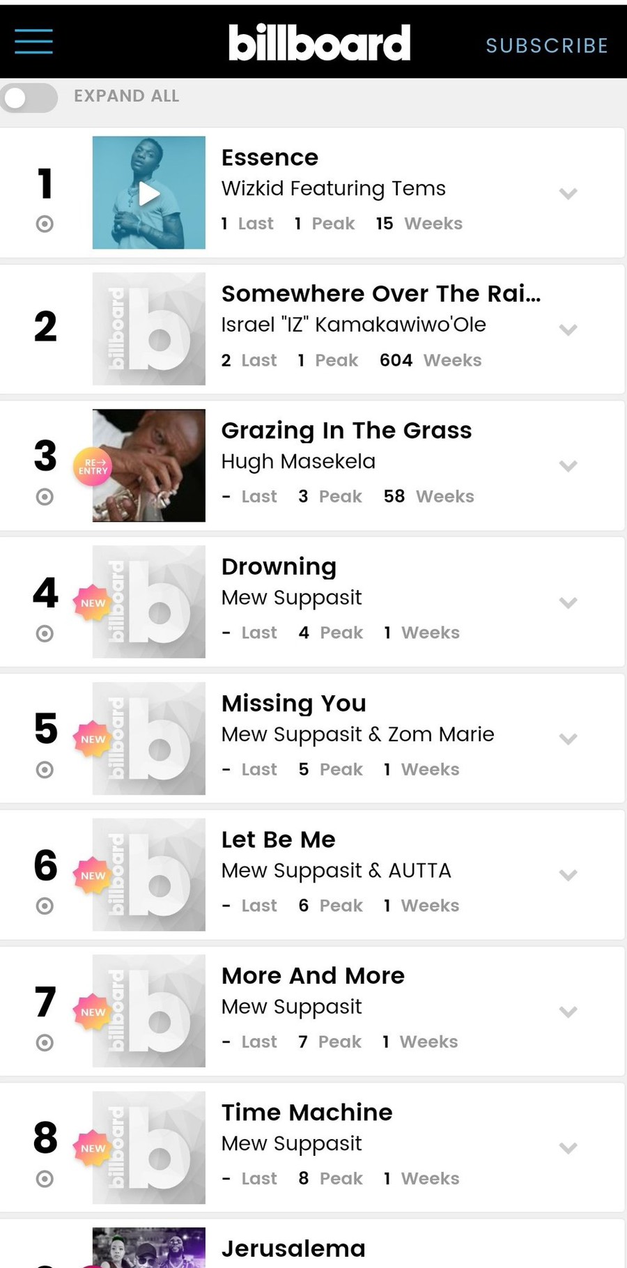 มีเรื่องให้น่ายินดีอีกแล้ว สำหรับวงการเพลงไทยหรือ TPOP ของบ้านเรา เพราะ มิว ศุภศิษฏ์ จงชีวีวัฒน์ สร้างความฮือฮาได้อีกครั้ง เมื่อ Billboard Charts ได้ทวีตหา MewSuppasit เพื่อแจ้งข่าวว่าเพลงในอัลบั้ม “365” (Three Six Five) ได้ขึ้นสู่ Top10 ในชาร์ตถึง 5 เพลงด้วยกัน นับเป็นศิลปินไทยคนแรกที่ติดชาร์ตบิลบอร์ดในสาขานี้