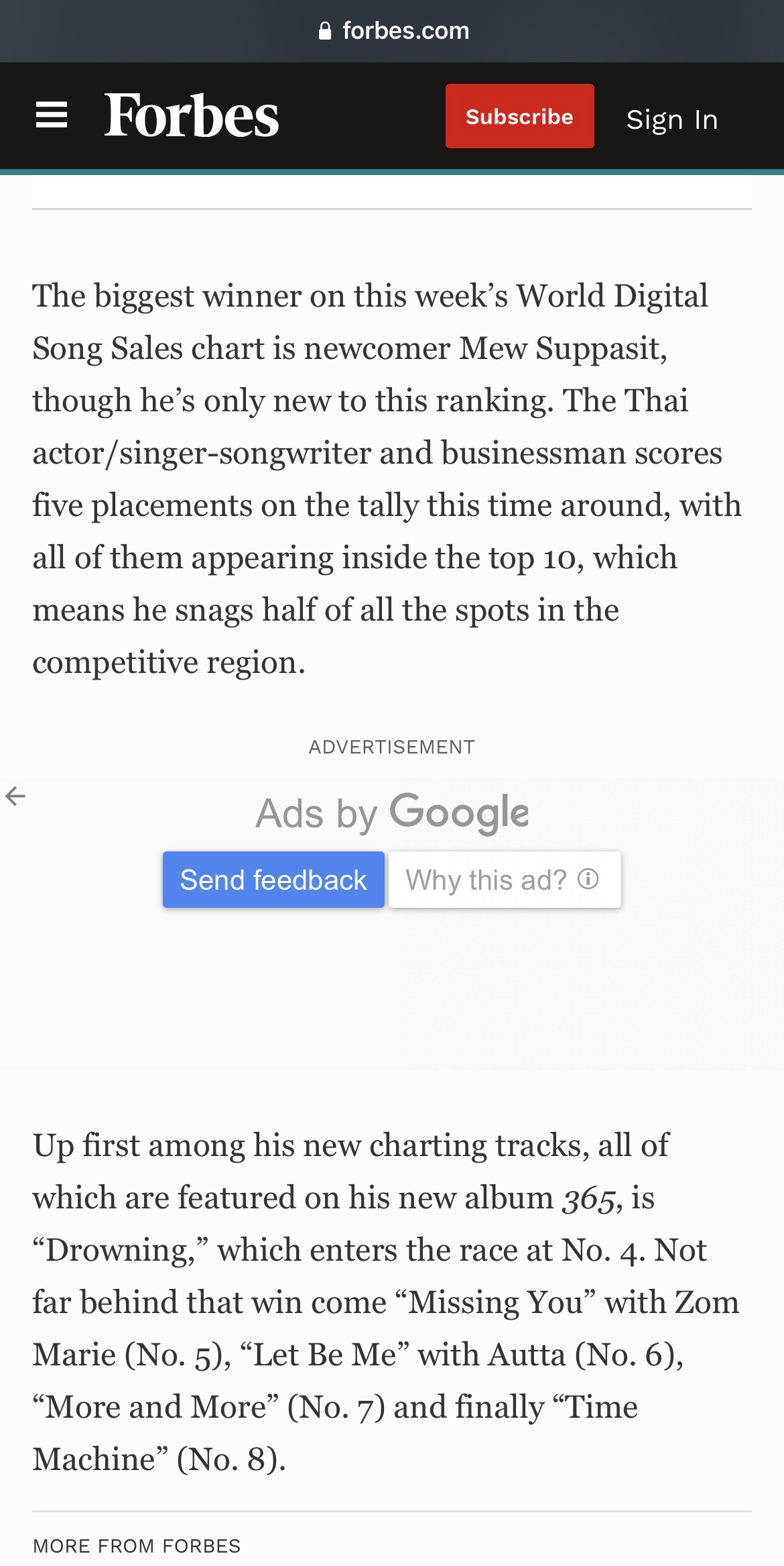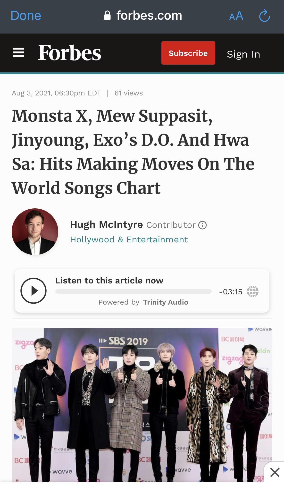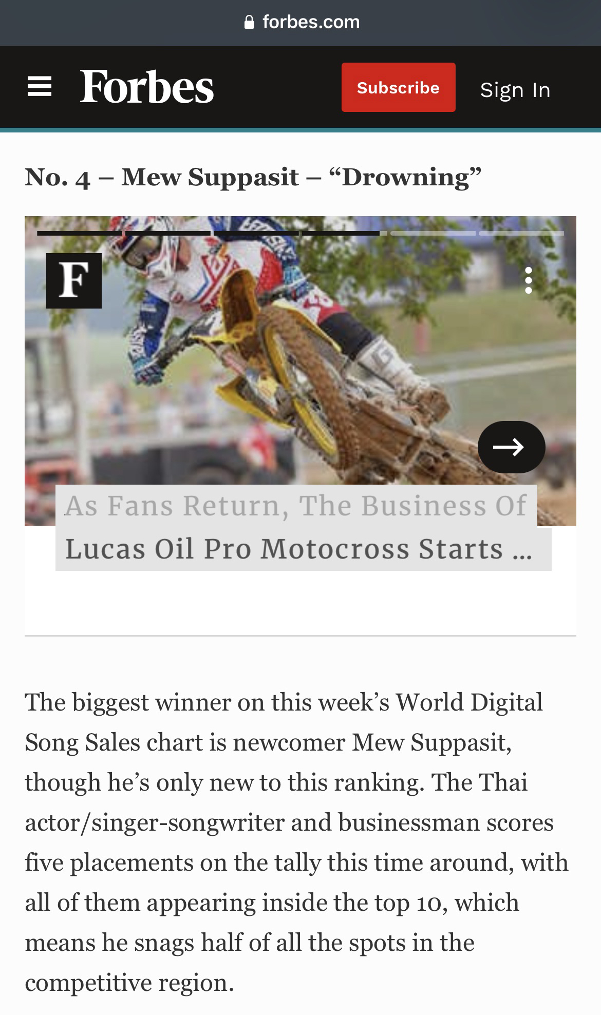และด้วยกระแสร้อนแรงบน Billboard Charts ขนาดนี้ จึงไม่น่าแปลกใจ ที่ทำให้สื่อทั่วโลกหันมาสนใจในตัวศิลปินไทย ที่ชื่อ มิว ศุภศิษฏ์ ดูได้จากการที่นิตยสาร Forbes ยังชื่นชมลงบทความถึงศิลปินเอเชี่ยนที่สามารถครองชาร์ตเพลงทั่วโลกได้ในเวลานี้ โดยเฉพาะ มิว ศุภศิษฏ์ ที่ถือเป็นการขึ้นสู่ Billboard Charts เป็นครั้งแรก ถึงจะหน้าใหม่ในชาร์ตนี้แต่พาเพลงเข้ามามากถึง 5 เพลงด้วยกัน ครองชาร์ตนี้ไปแล้วครึ่งนึง ด้วยคะแนนที่เรียกว่าสุดยอดมากๆ สามารถติดชาร์ต Top10 ได้พร้อมกันถึง 5 เพลงรวด ซึ่งปกติเหตุการณ์แบบนี้จะเกิดขึ้นเฉพาะกับศิลปินที่ใหญ่มากๆ และดังไปทั่วโลกเท่านั้น และยังมีสื่อต่างชาติให้ความสนใจติดต่อเข้ามาเพื่อขอสัมภาษณ์มากมาย ถึงการเข้าสู่ Billboard Charts ในครั้งนี้ และเมื่อแฟนคลับชาว Mewlions (มิวเลี่ยน) ทราบข่าวที่น่ายินดีนี้ ก็ไม่รอช้า ต่างตื่นเต้นดีใจจน #MewOnBillboard ติดเทรนด์อันดับ 1 ทันทีในเวลาอย่างรวดเร็ว