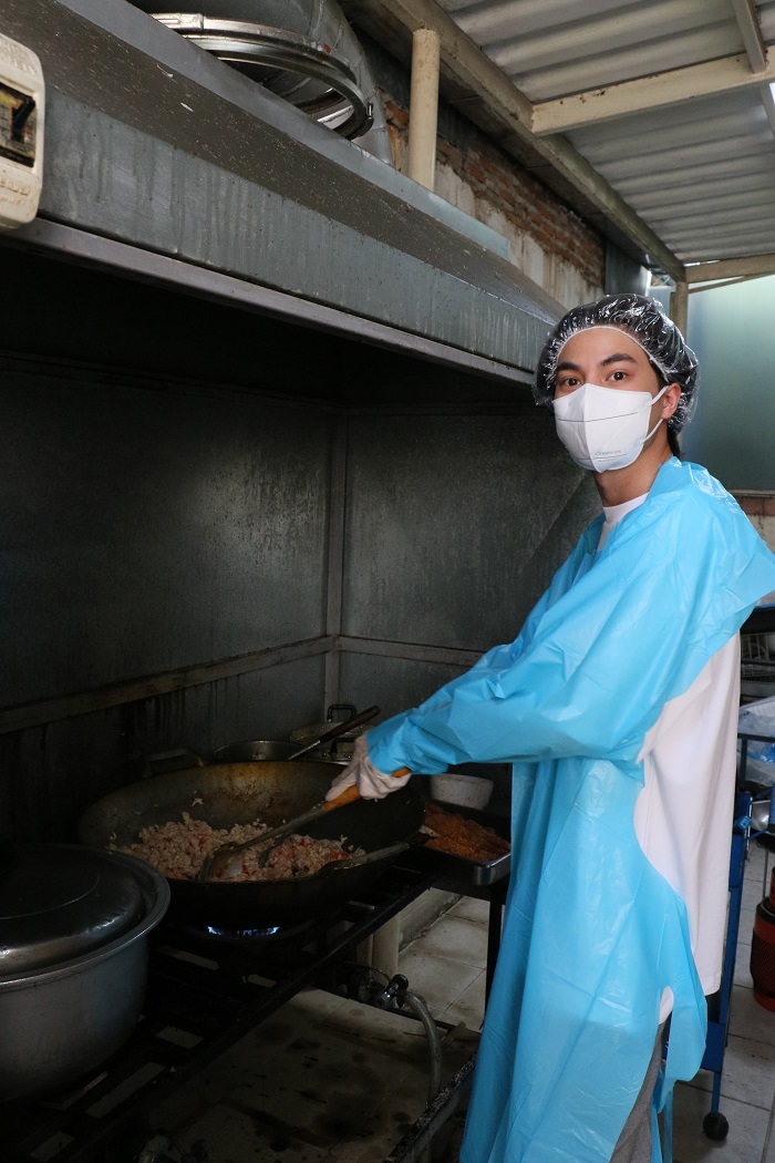 หนุ่มกลัฟ เผยความรู้สึกนี้ว่า “ผมและทางครอบครัวได้มีโอกาสใช้เวลาว่างช่วงที่ได้พักจากการทำงาน ซึ่งเป็นช่วงที่อยู่บ้าน และได้มีการปรึกษากับครอบครัวว่าอยากที่จะทำอะไรเพื่อเป็นกำลังใจให้กับคนอื่น ๆ ที่กำลังเผชิญความลำบากในตอนนี้ ซึ่งพ่อกับแม่ก็เห็นด้วย จนมาเป็นการลงมือทำอาหารเพื่อส่งให้กับคนที่เดือดร้อนตามแหล่งชุมชน และแคมป์คนงานที่ต้องกักตัว เพราะก่อนหน้านี้ผมและพี่ ๆ แฟนคลับได้มีการส่งอาหารและอุปกรณ์เครื่องมือที่จำเป็นในการใช้รักษาผู้ป่วยที่ติดเชื้อให้กับทางโรงพยาบาลและทางบุคลากรทางการแพทย์ไปแล้ว”