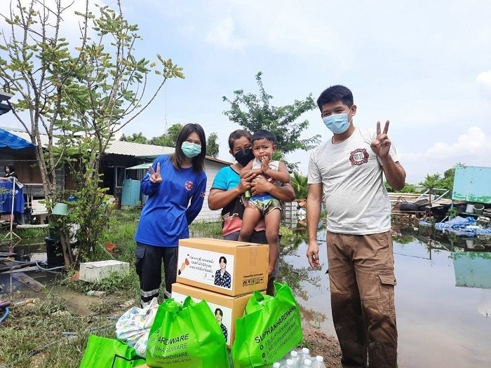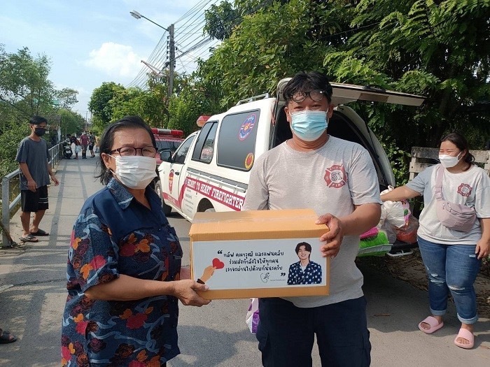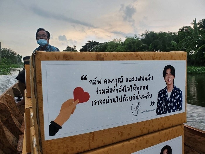 โดยกล่องปันน้ำใจจากโครงการ Gulf Charity หนุ่มกลัฟ ได้นำกล่องไปมอบให้กับมูลนิธิต่างๆ ที่ประสานงานช่วยเหลือผู้ป่วยโควิด-19 อย่างละ 100 กล่อง อาทิ มูลนิธิกระจกเงา มูลนิธิเส้นด้าย ที่มีความประสงค์เพื่อนำไปส่งต่อให้เกิดประโยชน์มากที่สุด นอกจากนี้ยังนำกล่องไปมอบให้กับชาวบ้านจังหวัดสิงห์บุรี ผ่านโครงการ “ทีมใจถึงใจคนไทยไม่ทิ้งกัน” โดยสองพี่น้องวงการบันเทิง “ฝันดี-ฝันเด่น” ที่ได้รับความเดือดร้อนจากสถานการณ์น้ำท่วมและได้รับผลกระทบจากโควิด-19 ลงพื้นที่แจกกล่องปันน้ำใจจำนวน 200 กล่องให้ รวมถึงชาวบ้านชุมชนริมคลอง อำเภอบางใหญ่ จังหวัดนนทบุรี จำนวน 100 กล่อง ที่เคยนำข้าวกล่องไปมอบให้แล้วยังขาดแคลนยังต้องการความช่วยเหลือ เพื่อให้เกิดประโยชน์กับพี่น้องคนไทยต่อไป หล่อแล้วยังจิตใจดีอีกด้วย อย่างไรก็ขอร่วมอนุโมทนาบุญกับ หนุ่มกลัฟ ในครั้งนี้ด้วยนะจ๊ะ
