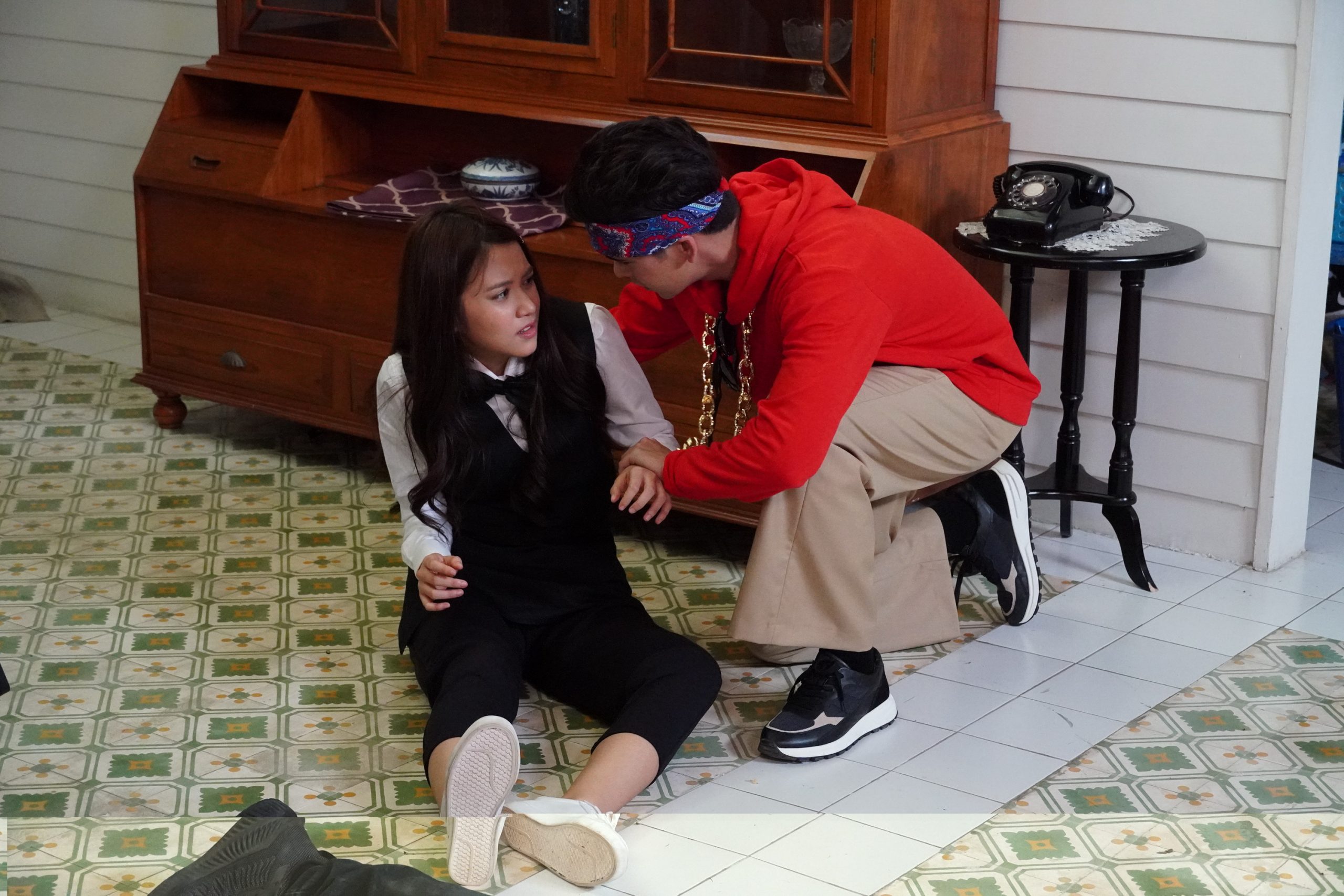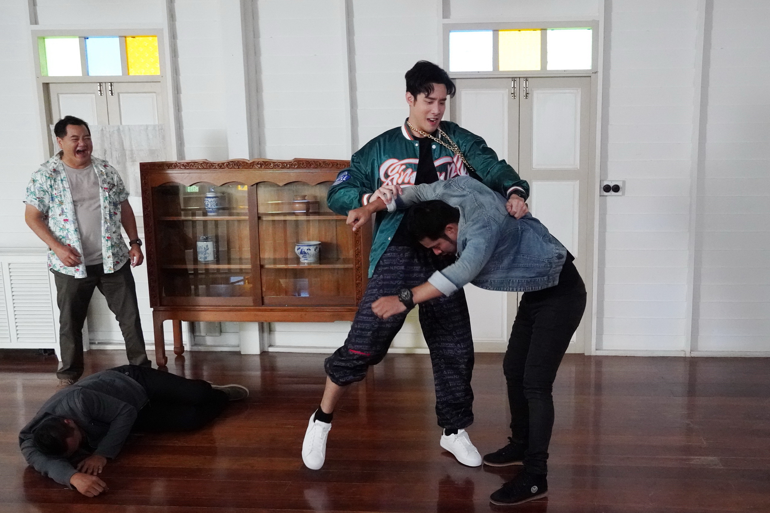 ซึ่งเบื้องหลังความสนุกของฉากนี้ ทำเอาคนทั้งกอง ต้องเอ็นดูกับความสดใสกับลุคใหม่ที่ของ จาด้า และ เบนซ์ ที่ต่างเห็นหน้าตาและทรงผมของตัวเองก็อดขำไม่ได้ โดยเฉพาะ จาด้า ที่ผู้กำกับสั่งคัทปุ๊บ เจ้าตัวถึงกับต้องหยิบโทรศัพท์ขึ้นมาเซลฟี่ตัวเอง ส่วน เมฆ และ พอล ก็ไม่น้อยหน้าขอไปซักซ้อมคิวบู๊ ออกหมัดเด็ดทั้งเตะต่อยจนผู้กำกับยังต้องชมกับความคล่องของ 2 หนุ่ม
