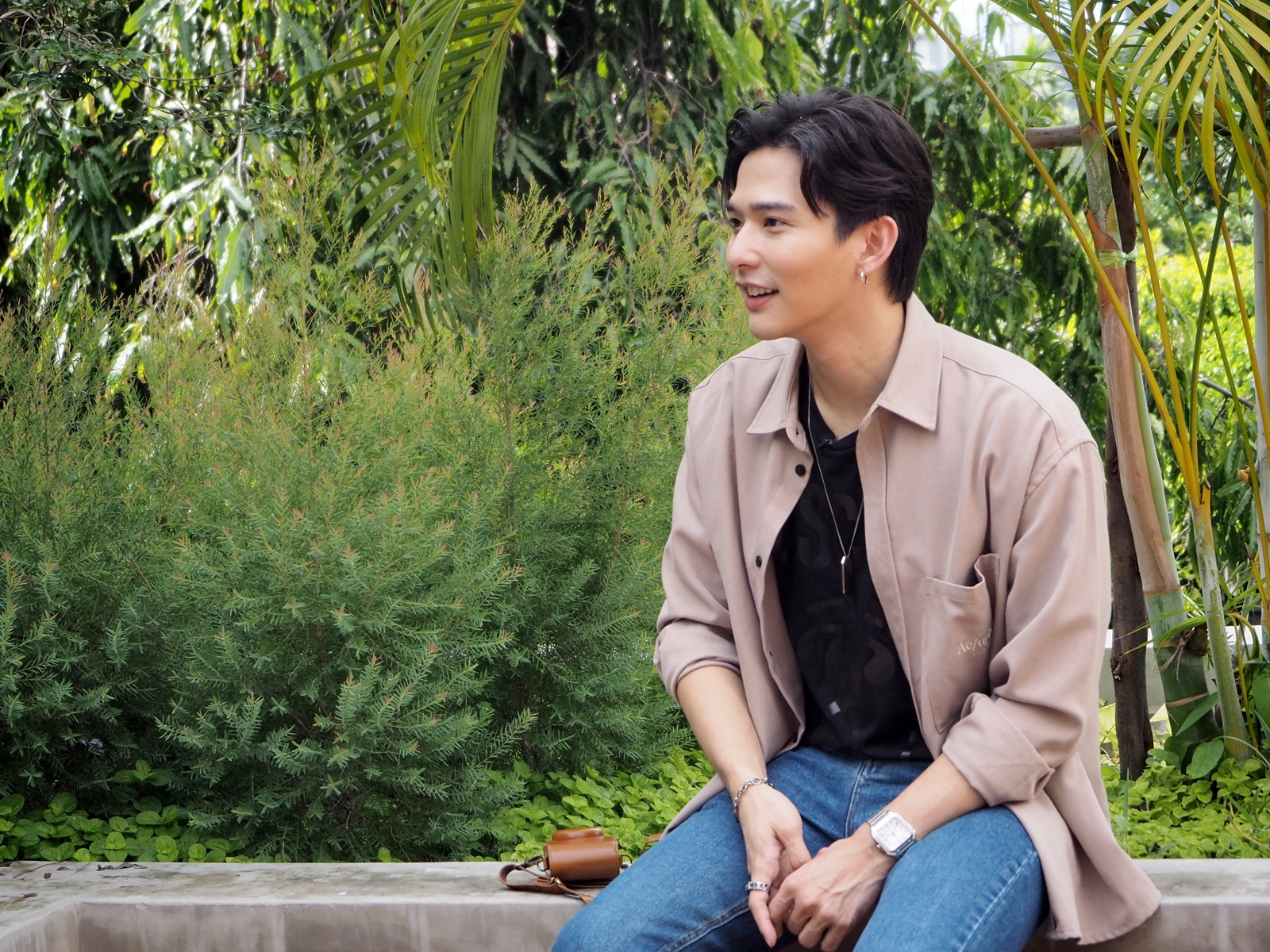 “ไม่เคยรู้สึกว่าตัวเองจะติสท์เลยครับ เวลาอยู่กับคนอื่น ๆ ผมก็เป็นคนธรรมดาทั่วไป แต่ตอนเด็กยอมรับว่าเป็นคนแปลก ๆ เพราะรู้สึกว่าตัวเองเป็นอมตะ (หัวเราะ) รู้สึกว่าทำอะไรได้ทุกอย่าง เต็มที่แค่เจ็บแต่ไม่ตาย บางทีรถวิ่งผ่านหน้าบ้านผมก็จะไปวิ่งปาดหน้ารถ แต่โชคดีที่เขาเบรกทันแล้วลงมาด่า บางทีก็ชอบไปนั่งที่สูง ๆ บนหลังคาบ้านอะไรแบบนี้ครับ ตอนนั้นรู้สึกได้ปลดปล่อยดี ชมวิวชิว ๆ ดื่มด่ำบรรยากาศ จนโตมาเรียนจบหางานทำเลยเลิกพฤติกรรมเหล่านั้นไป ผมแคสงานตั้งแต่วัยเรียนแล้ว ทั้งงานโฆษณา งานละคร เนื่องจากเราอยากหาเงินเองเพื่อไปซื้อกีต้าร์ แล้วมีอยู่งานหนึ่งมันเป็นงานประกวด คิดว่างานแคสแบบไม่ตั้งใจ ปรากฏว่าเขาเลือกเรา เซ็นต์สัญญาเล่นซีรีส์เรื่อง U-Prince Series ถือเป็นจุดเปลี่ยนแรกในชีวิตเลยครับ พอผู้คนเริ่มรู้จักเราแล้วตกใจ ด้วยความที่โด่งดังอย่างรวดเร็ว จนเราคิดได้ว่าการดังมันไม่ได้ยาก แต่การรักษาชื่อเสียงเอาไว้มันยากกว่า จะทำงานยังไงให้คนรอบตัวรู้สึกรักเรา ทำยังไงให้เขามองว่าเราไม่ได้เปลี่ยนไปในวันที่โตขึ้น ความรับผิดชอบต่อหน้าที่การงานยิ่งสำคัญ บทบาทที่ได้รับและการพัฒนาฝีมือ ทั้งหมดเป็นสิ่งที่ต้องทำในวงการมาตลอด 6-7 ปี ได้ครับ ผลงานซีรีส์ผ่านมาแล้วประมาณ 10 กว่าเรื่อง ซึ่งผมก็ยึดคำสอนของพ่อที่เคยสอนว่า ทำอะไรสักอย่างในชีวิตให้มันดี ตั้งแต่นั้นมาผมก็ใช้คำนี้นำชีวิตมาตลอดครับ”