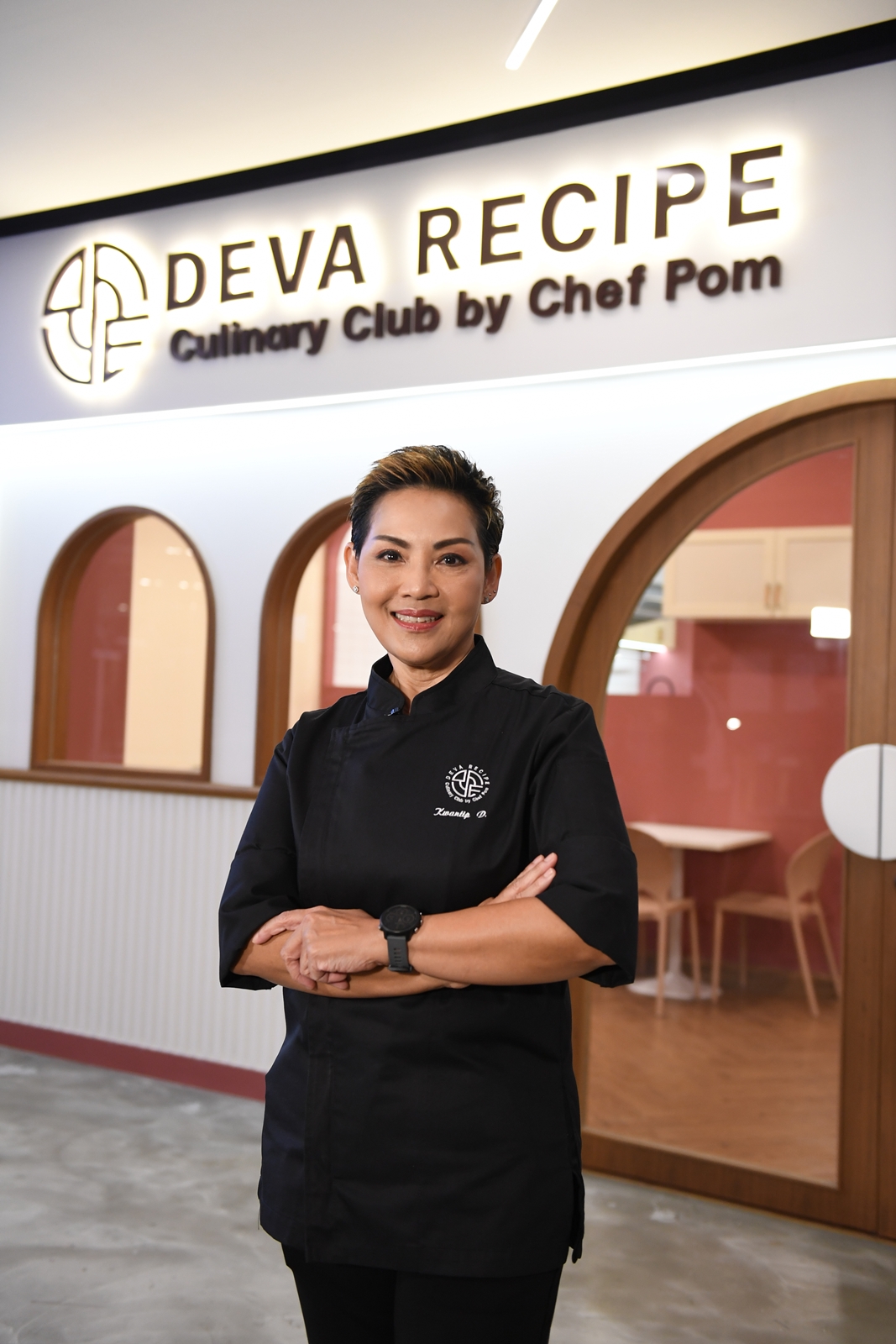 “จริง ๆ เปิดร้านอาหารมาแล้ว แต่ไม่ได้มีความรู้สึกเป็นสุขอยู่ตรงนั้น มันกลับทำให้ความรู้สึกในการทำอาหารหายไป ช่วงนั้นต้องเครียดเรื่องต้นทุน ทีมงานในร้านและลูกค้า ซึ่งมีแต่ความเครียด ดังนั้นการครีเอทอาหารจานใหม่ ๆ หรือความตื่นเต้นเกี่ยวกับเรื่องอาหารมันหายไป พี่เลยคิดว่าพี่น่าจะถูกจริตกับการสอนมากกว่า ก็เลยคิดว่าใช่แหละ ตรงนี้น่าจะทำให้พี่สนุกได้ เลยเกิดมาเป็นโรงเรียน Deva Recipe ตกแต่งสไตล์ครัวในบ้าน ที่ใครเข้ามาเรียนแล้วจะรู้สึกมีความสุข สนุก และมั่นใจในการทำอาหาร ที่นี่เราจะจับมือสอนเลย ไม่เคยทำยังไงก็จะต้องทำได้ ที่สำคัญไม่ใช้ผงชูรส สร้างความอูมามิขึ้นมาจากวัตถุดิบที่ใส่ลงไป กว่าจะมีวันนี้ก็ต้องรอจังหวะให้เราแน่นระดับหนึ่ง เริ่มมีฐานที่จะกล้าแสดงออกพร้อมกับการออกสื่อ กลายเป็นจุดเปลี่ยนในชีวิตไปเลย จากช่วงที่แคนดิเดตกรรมการมาสเตอร์เชฟ ตอนนั้นอาจจะยังไม่แก่พอที่จะสร้างรังสีได้ (หัวเราะ) ถ้าคุณเด็กเกินไปคุณจะเที่ยวไปว่าใครตำหนิใครได้ เขาฟังเราไม่ได้ถ้าประสบการณ์มีไม่มากพอ แล้วมีหลายคนบอกเชฟแสดง ไม่ใช่นะคะ ทั้งหมดนับได้ 10 ซีซั่น ถ้าเป็นการแสดงพี่คงอยู่ยาวนานขนาดนี้ไม่ได้”