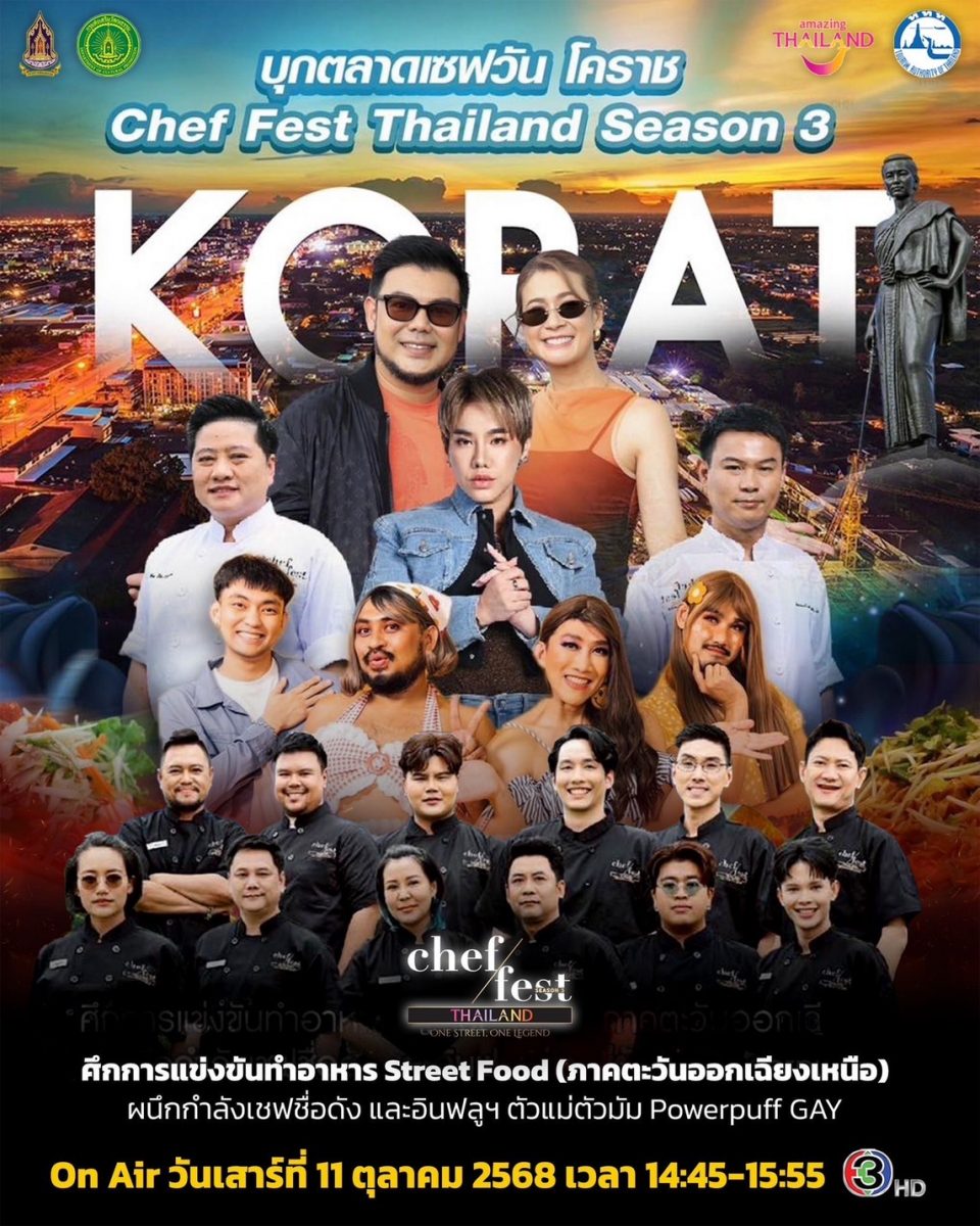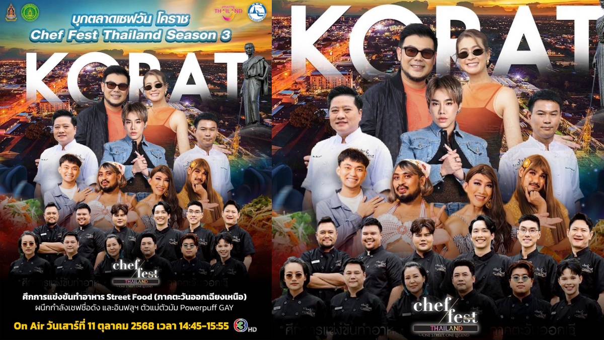 สงครามจานเดือดภายใต้โจทย์ “Street Food อีสาน” ในรายการ “Chef Fest Thailand Season 3 : One Street, One Legend” EP ที่แล้ว ณ ตลาดนัดเซฟวัน โคราช ศูนย์รวมของกินระดับตำนานภาคตะวันออกเฉียงเหนือร้อนแรงจนครัวไฟลุก EP4 วันเสาร์ที่ 11 ตุลาคมนี้ ยิ่งอัพเลเวลความโหดเตรียมเปิดโหมดแตกหัก!! หนึ่งจานสุดท้ายเพื่อตัดสินอนาคตของ 12 เชฟผู้เข้าแข่งขัน “ใครจะอยู่ ใครจะไป?” ใครคือคนต้องโบกมือลาจากการแข่งขัน กับ 4 เมนูสุดสร้างสรรค์ เนื้อย่างโคราช ลุยแดนอีสาน, กล่องข้าวน้อยค่ะแม่, หลายใจอีหลีบ่จ๊ะ, ตุ้มโฮม นำโดยแก๊งอินฟลูฯชื่อดัง “Powerpuff GAY” ลอเรน, ม้าม่วง, เต้ และ อาร์ตตี้ ผ่านการพรีเซ้นต์เมนูสุดสร้างสรรค์ เพื่อเอาชนะใจ 3 คณะกรรมการ เชฟเมย์-พัทธนันท์ ธงทอง (National Coach, Thailand Culinary Academy), เชฟบาส-วัฒนศักดิ์ ช่างเก็บ (Executive Chef, Hungry Nerd), และ ดีเจบุ๊คโกะ-ธนัชพันธ์ บูรณาชีวาวิไล งานนี้ทุกทีมต้องงัดกลยุทธ์มาพิสูจน์ทั้งรสมือ ไอเดีย พลังของทีมเวิร์ก เพื่อสร้างสรรค์หนึ่งจานที่เล่าเรื่องราวของถิ่นอีสานในสไตล์ตัวเอง โดยมีเวลาเพียง 2 ชั่วโมงในการแข่งขัน และต้องขายจริงให้ลูกค้าได้ชิมและให้คะแนนโหวต ร่วมด้วย 2 พิธีกร ป๊อก–กิตติพันธุ์ ปั้นตะกั่ว และ เอมี่ กลิ่นประทุม