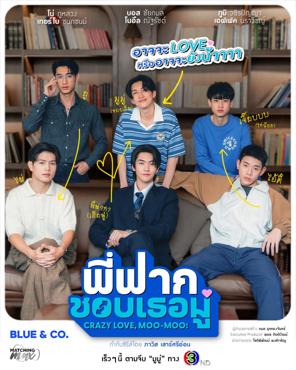ทำเอาไทม์ไลน์ลุกเป็นไฟ หลัง บริษัท บลู แอนด์ โค.จำกัด ผู้จัดน้องใหม่ ปล่อยโปสเตอร์และ Official Pilot ซีรีส์วายรอมคอมฟีลกู๊ด “พี่ฟากชอบเธอมู่ Crazy Love, Moo Moo!” ที่หยิบจักรวาลบ้านจีนสุดป่วนจากนิยายดังของ Littleskyofme เจ้าของผลงานI Will Knock You – พี่จะตีนะเนย มาขยายความรักสายกัดจิก แต่หวานเกินต้าน