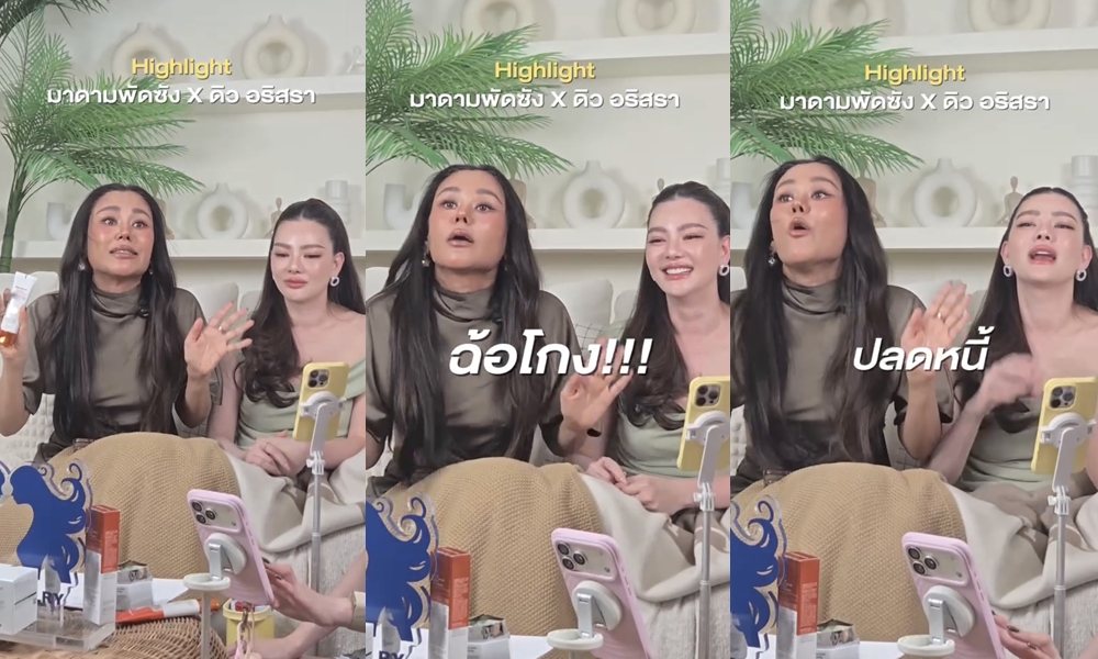 แม้จะผ่านวิกฤตชีวิตขั้นสูงสุดในชีวิตจากการใช้ชีวิตที่ผิดพลาดในเรื่องการเงิน แต่ดาราสาว “ดิว อริสรา ทองบริสุทธิ์” ก็พร้อมกลับมารับผิดชอบในสิ่งที่เกิดขึ้นและมุ่งทำงานเก็บเงินทุกบาททุกสตางค์เพื่อชดใช้หนี้สินตามกำหนดเวลาตามสัญญาที่ให้ไว้กับทางเจ้าหนี้ ล่าสุด “ดิว อริสรา” ได้ออกมาไลฟ์สดกับ “มาดามพัดซัง – พลอยนภัส ศรีสำราญโชค“ CEO แบรนด์ ”Medi Jewelry“ ผลิตภัณฑ์ความงามนำเข้าจากประเทศเกาหลี ที่ออกมาเปิดใจถึงข่าวลือต่างๆว่าเตรียมโดนรวบจากกระแสข่าวเจ้าของแบรนด์เนมฉ้อโกง แต่สุดท้าทายกลับกลายเป็นไม่ใช่ร้านของมาดามพักซัง รวมถึงข่าวลือเรื่องมาดามพัดซังนั้นมีหนี้สินหลายร้อยล้าน งานนี้มหาราณีพัดซังเลยขอตระโกนดังๆให้รู้กันไปเลยว่า หนี้ที่ว่าคือหนี้จากธุรกิจส่วนตัว และก็ทำมาหากินเพื่อรับผิดชอบเช่นเดียวกับสาวดิวเช่นกันค่า