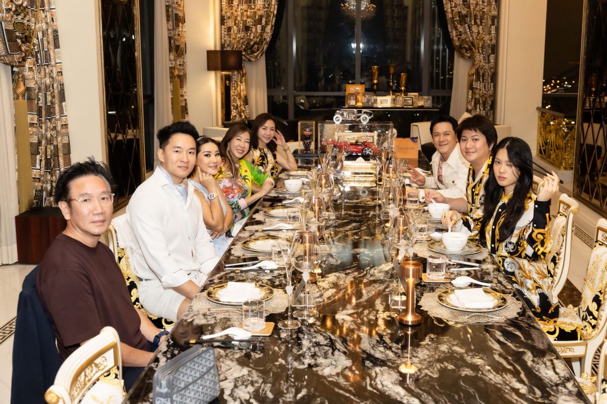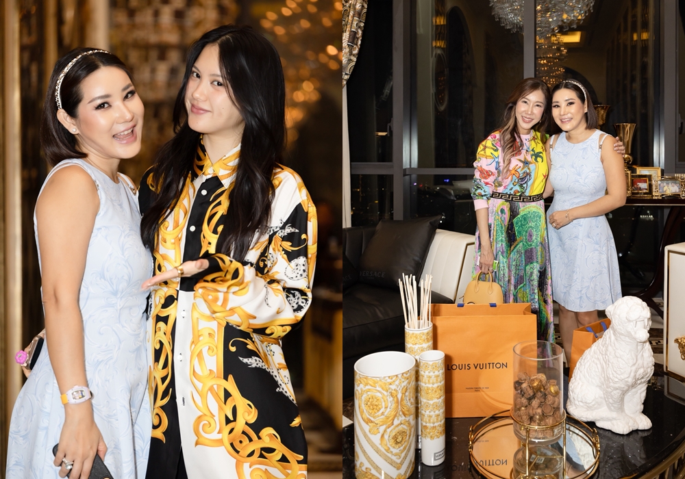 ล่าสุดทั้งคู่เปิดคฤหาสน์ Versace ต้อนรับเพื่อนสนิทอย่าง คุณเบน-กัลยานี กมลวิศิษฎ์ หลานสะใภ้คนสวยของ คุณชูวิทย์ กมลวิศิษฐ์ และ คุณจอนนี่-ธิติธรรม กมลวิศิษฎ์ ร่วมด้วยเพื่อนสนิทอีกหลายคน อาทิ คุณเอิ๊ก พรหมพร, คุณฟลุ๊ค เกริกพล ที่ควงแขนมาพร้อมภรรยาคนสวย คุณนาตาลี เจียวรนนท์ และเพื่อนสนิทในแวดวงไฮโซ ร่วมรับประทานอาหารแสดงความยินดี