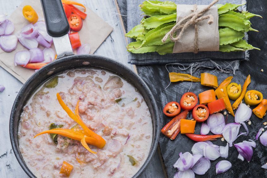 น้ำพริกหนุ่ม น้ำพริกตาแดง หรือน้ำพริกลงเรือ กินคู่กับหัวปลีลวก มะละกอลวก