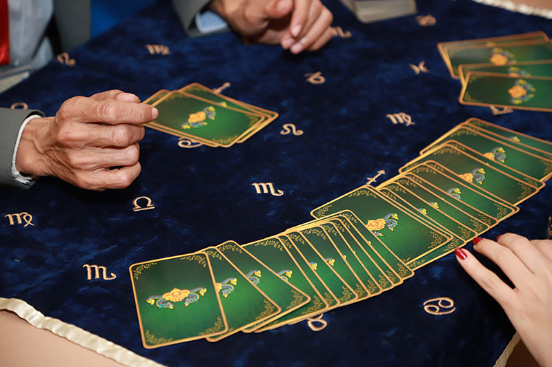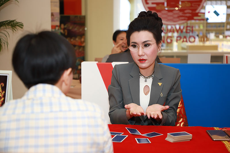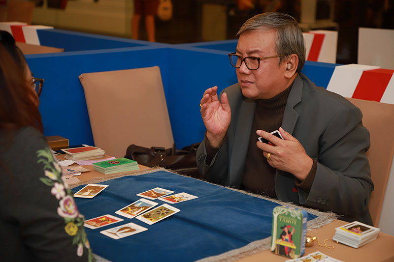 ภายหน้างานจะมีป้ายบอกชื่อหมอดู พร้อมศาสตร์แห่งการพยากรณ์ดวงชะตาต่างๆ มีทั้งไพ่นกกระจอก ธูปพยากรณ์ มากมายไปหมด เราแนบตารางมาให้ทุกคนได้เช็กคิวกันก่อน