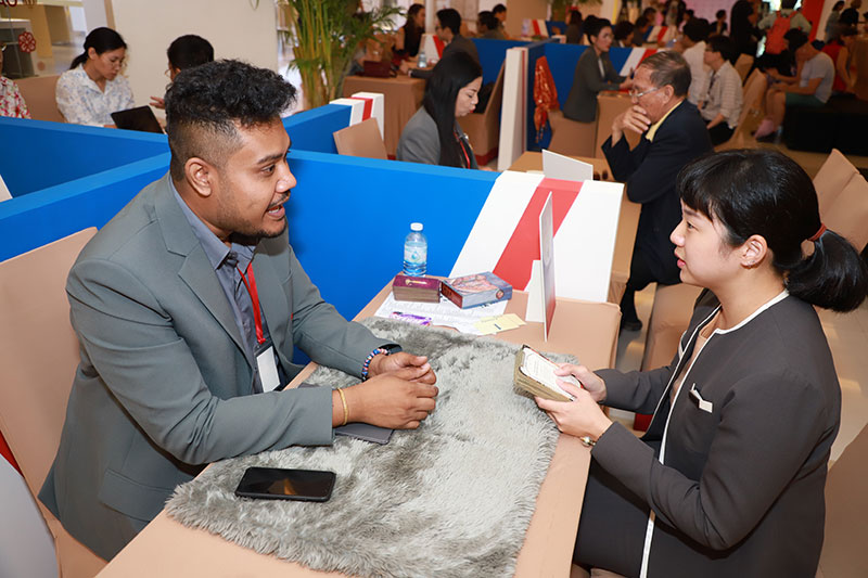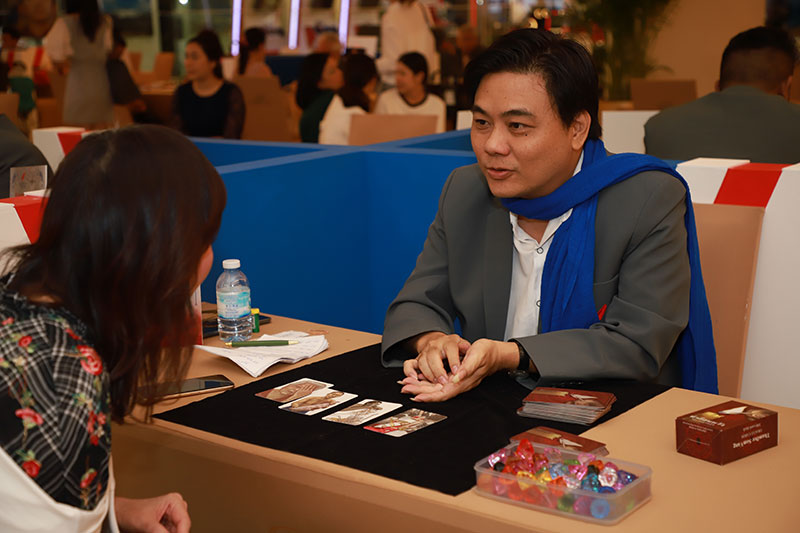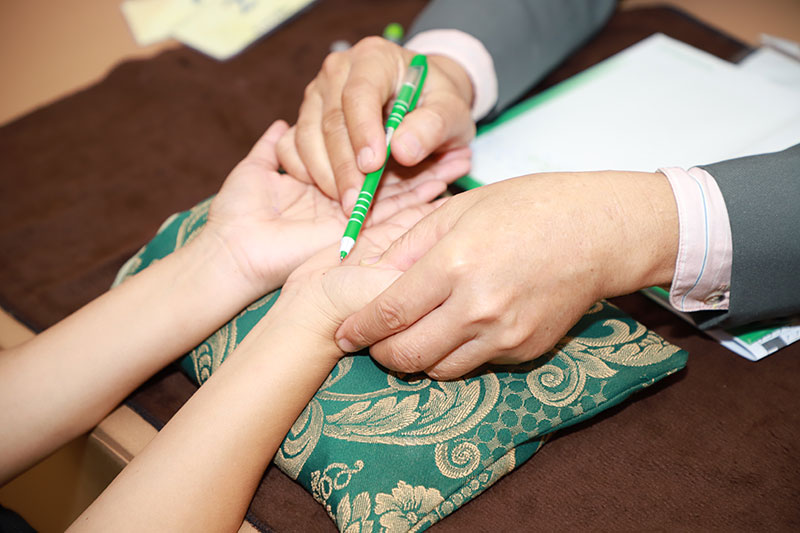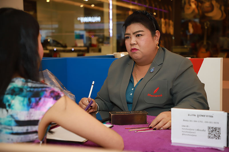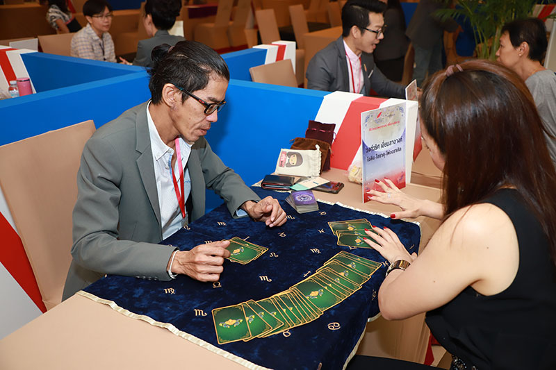 เริ่มจากขั้นตอนแรก ต้องลงทะเบียนโดยการจ่ายเงิน 400 บาท ซึ่งทางด้านหน้างานจะมีแผนกต้อนรับดูแลอย่างดี เราสามารถแจ้งชื่อหมอดูที่สนใจ ก็จะได้รับบัตรคิวเป็นการคอนเฟิร์ม