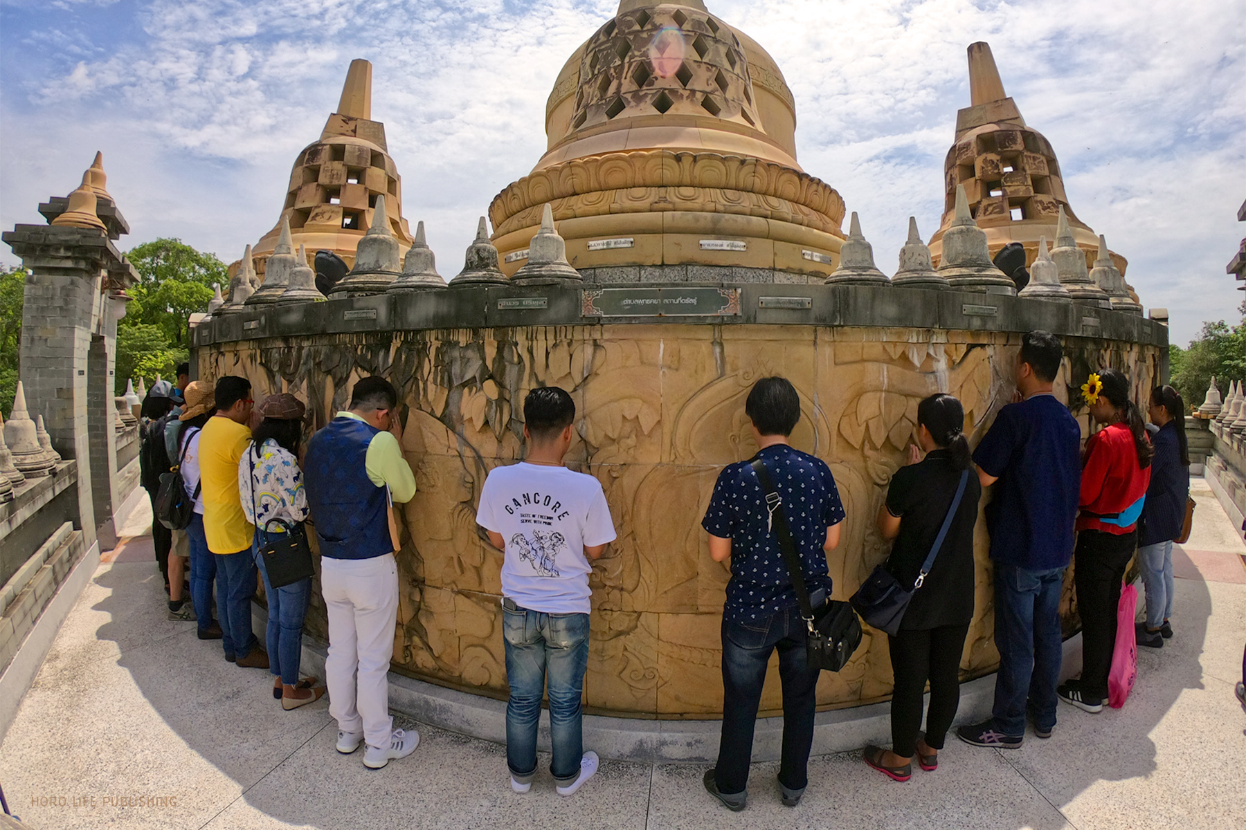 แล้วเดินทางไปต่อที่ พระมหาเจดีย์ชัยมงคล ชมความงดงามของมหาเจดีย์สุดยิ่งใหญ่ตระการตา โดย อ.คฑา พาผู้โชคดีมาร่วมฟังการบรรยายแนะนำก่อนนำทุกคนไปทำบุญสังฆทาน และสวดมนต์ขอพรพระบรมสารีริกธาตุบริเวณยอดพระมหาเจดีย์