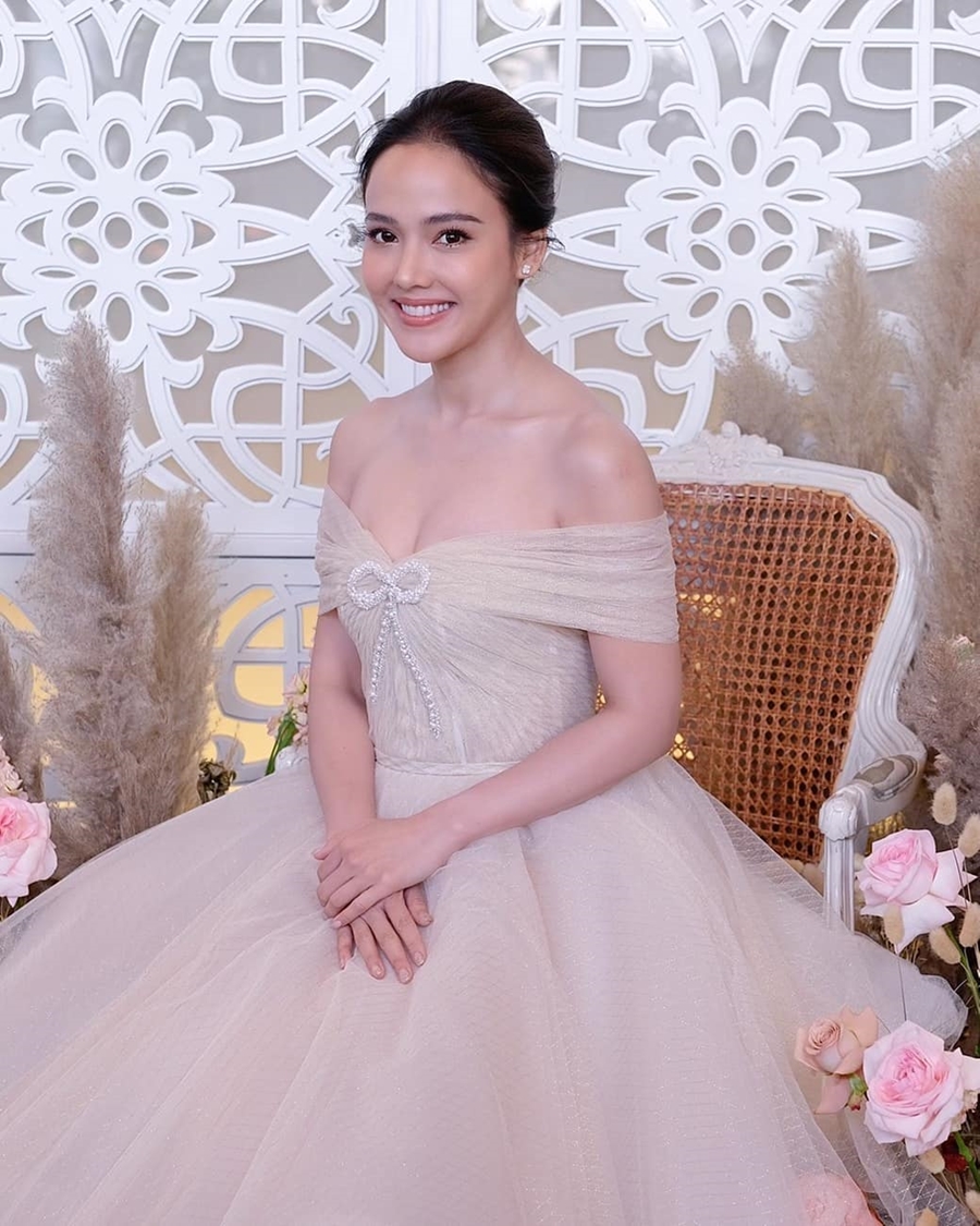 รูปภาพ จอย ชลธิชา ตัวอย่าง เจ้าสาวตัวเล็ก ใส่ชุดแต่งงานสั้น แต่สวยแกรนด์น่าจดจำ