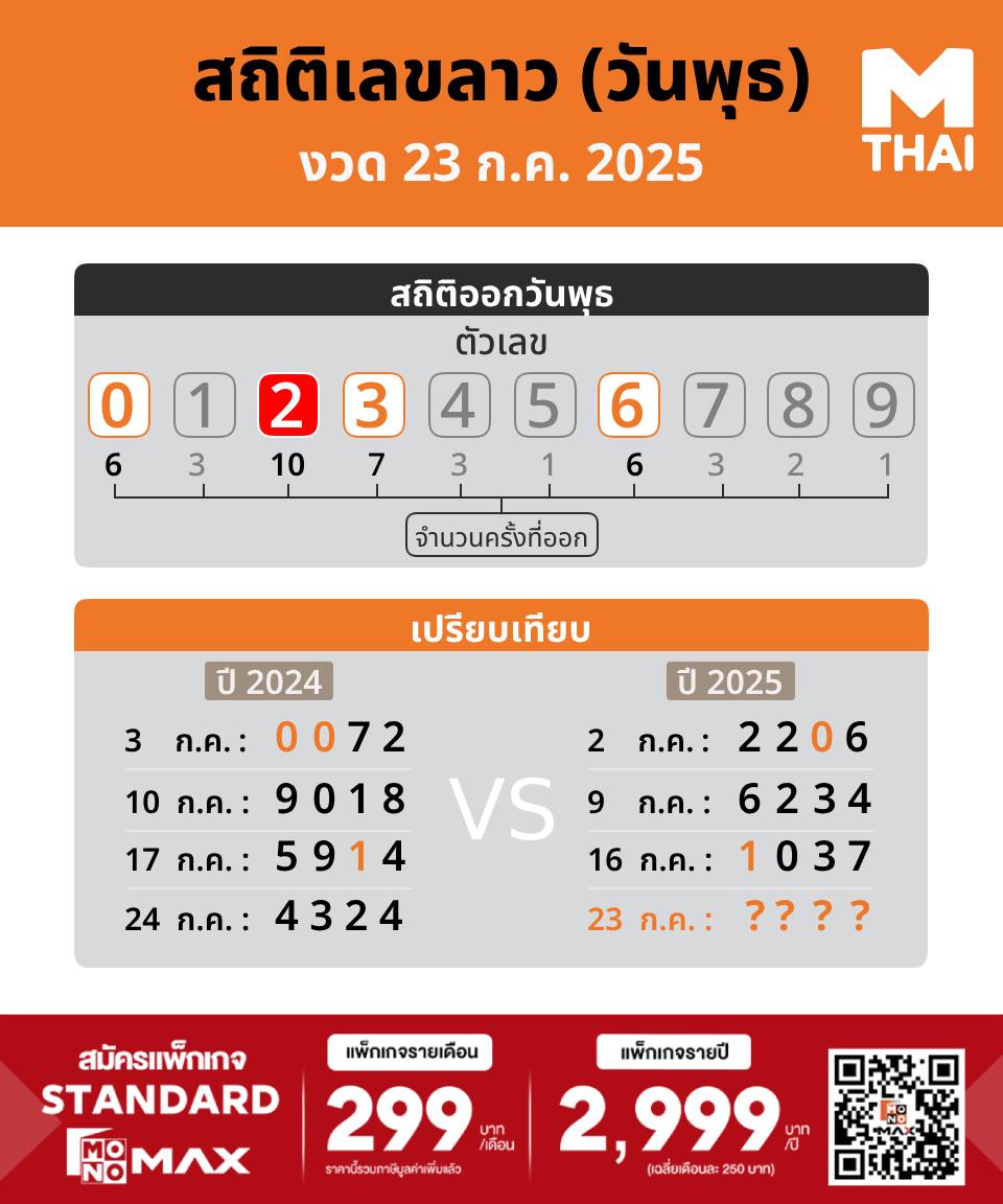 สถิติหวยลาว งวดวันพุธ 23 กรกฎาคม 2568