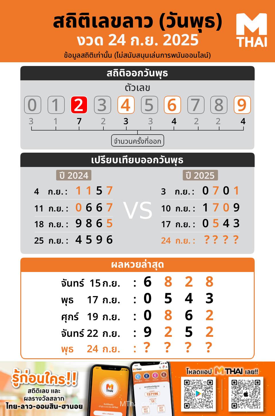 หวยลาว หวยลาววันนี้ วันพุธ 24 กันยายน 2568 รวดเร็วครบทุกรางวัล กดดูที่ MThai