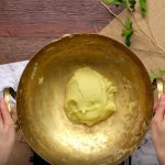 - ตั้งกระทะแล้วเทส่วนผสมที่ปั่นเสร็จเรียบร้อยแล้วลงไป เคี่ยวไปเรื่อยๆ จนสามารถปั้นได้