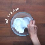 - ผสมกะทิและน้ำตาลมะพร้าว ตีให้เข้ากันจนน้ำตาลมะพร้าวละลาย