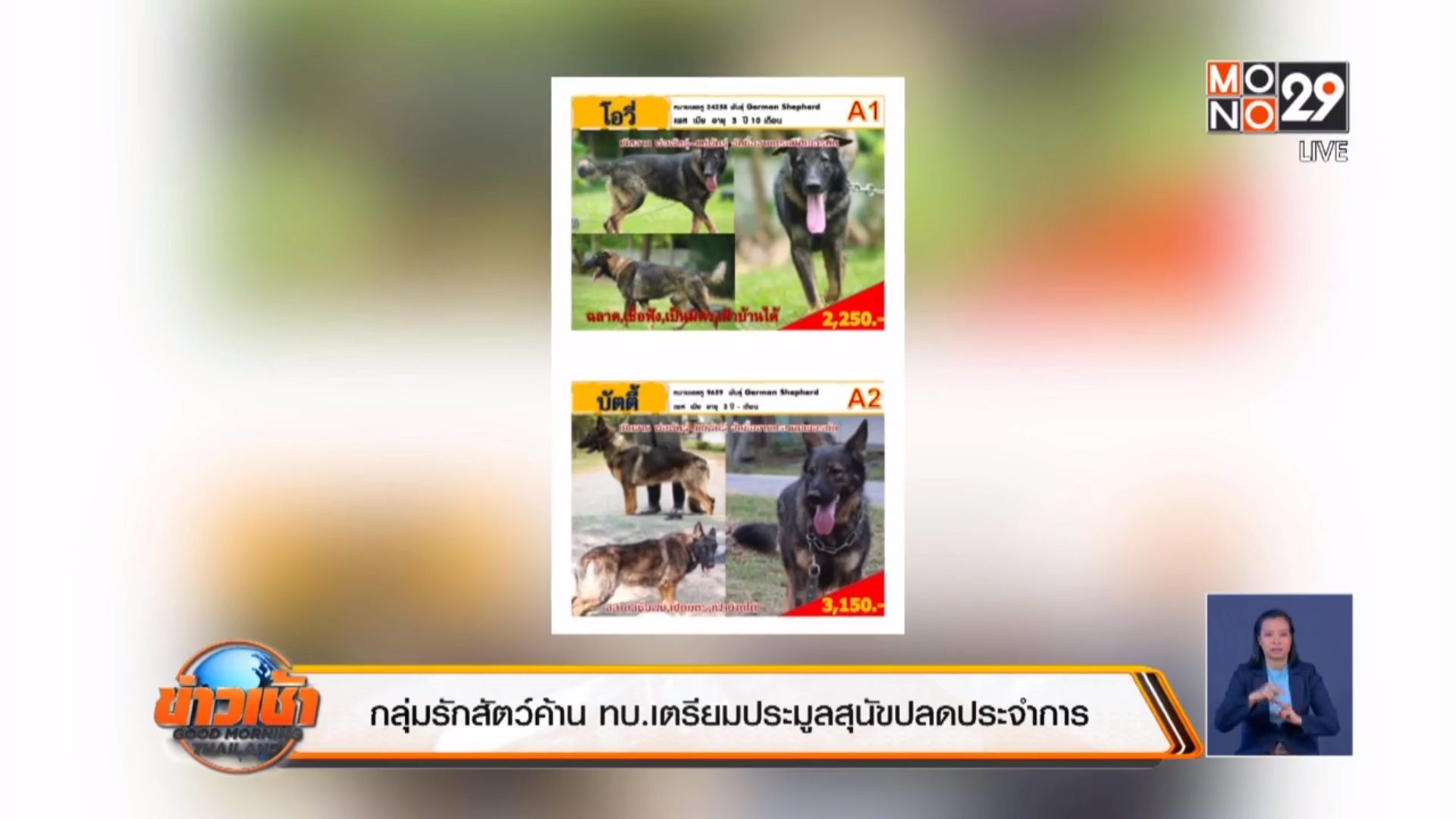- กรมการสัตว์ทหารบกเตรียมที่จะเปิดประมูลขายทอดตลาดสุนัขที่ไม่ผ่านเกณฑ์ 81 ตัว