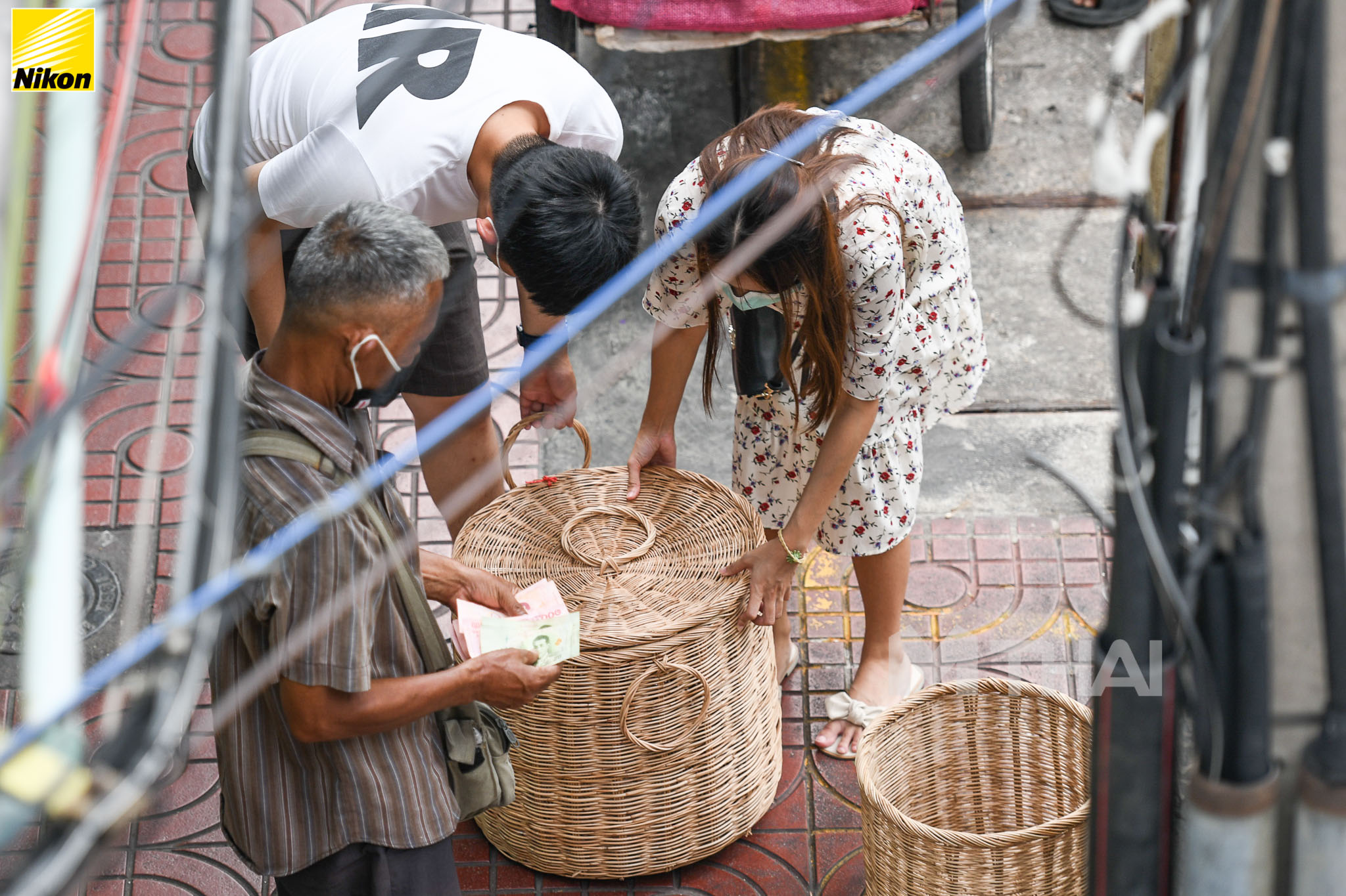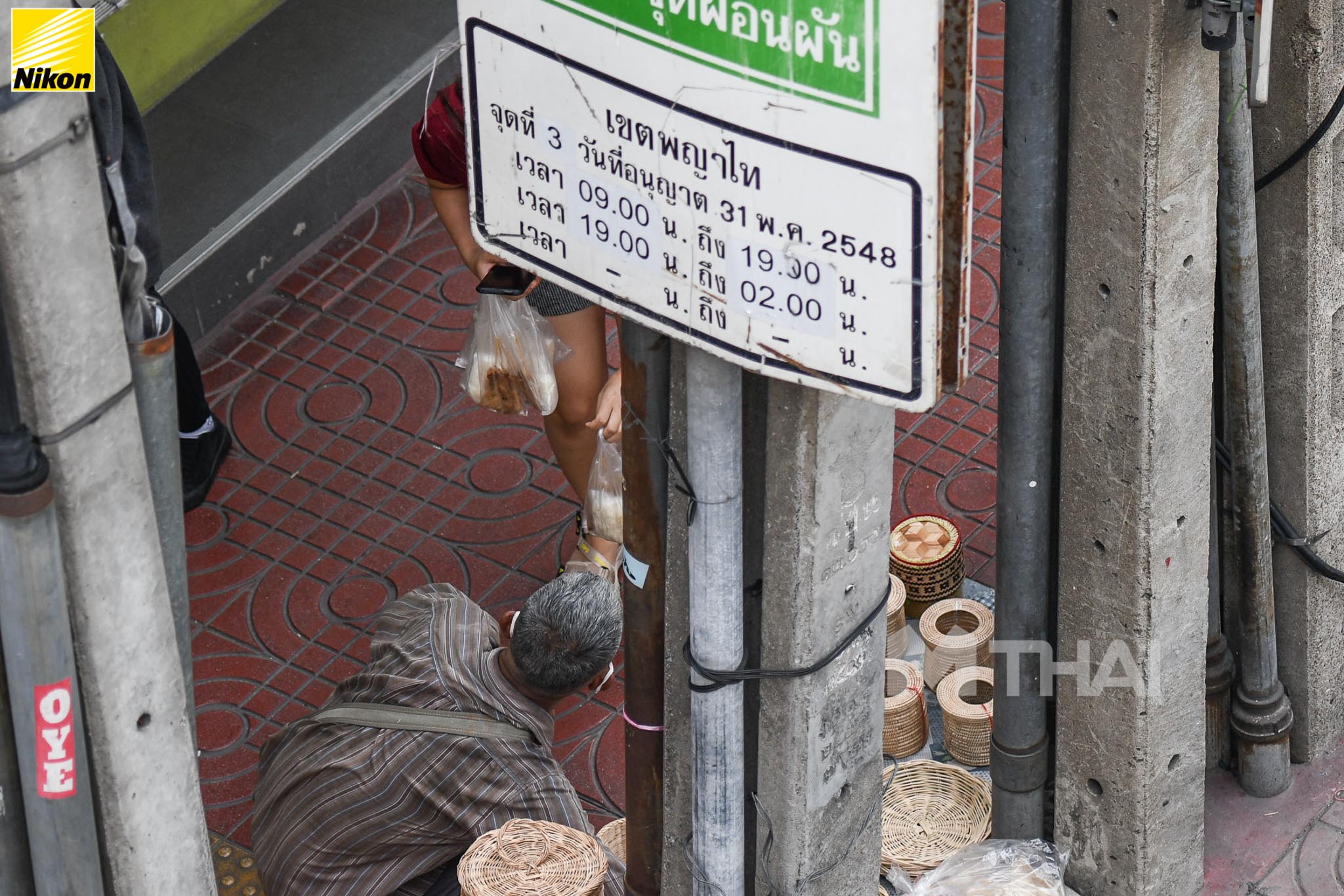 คุณลุงทองสุข สายบุตร วัย 60 ปี ชาวจังหวัดสุรินทร์ อำเภอท่าตูม ขายตะกร้าสาน หารายได้จุนเจือครอบครัว ที่หัวโค้งปากซอยอารีย์ 7 ช่องว่างระหว่างเสาไฟฟ้า