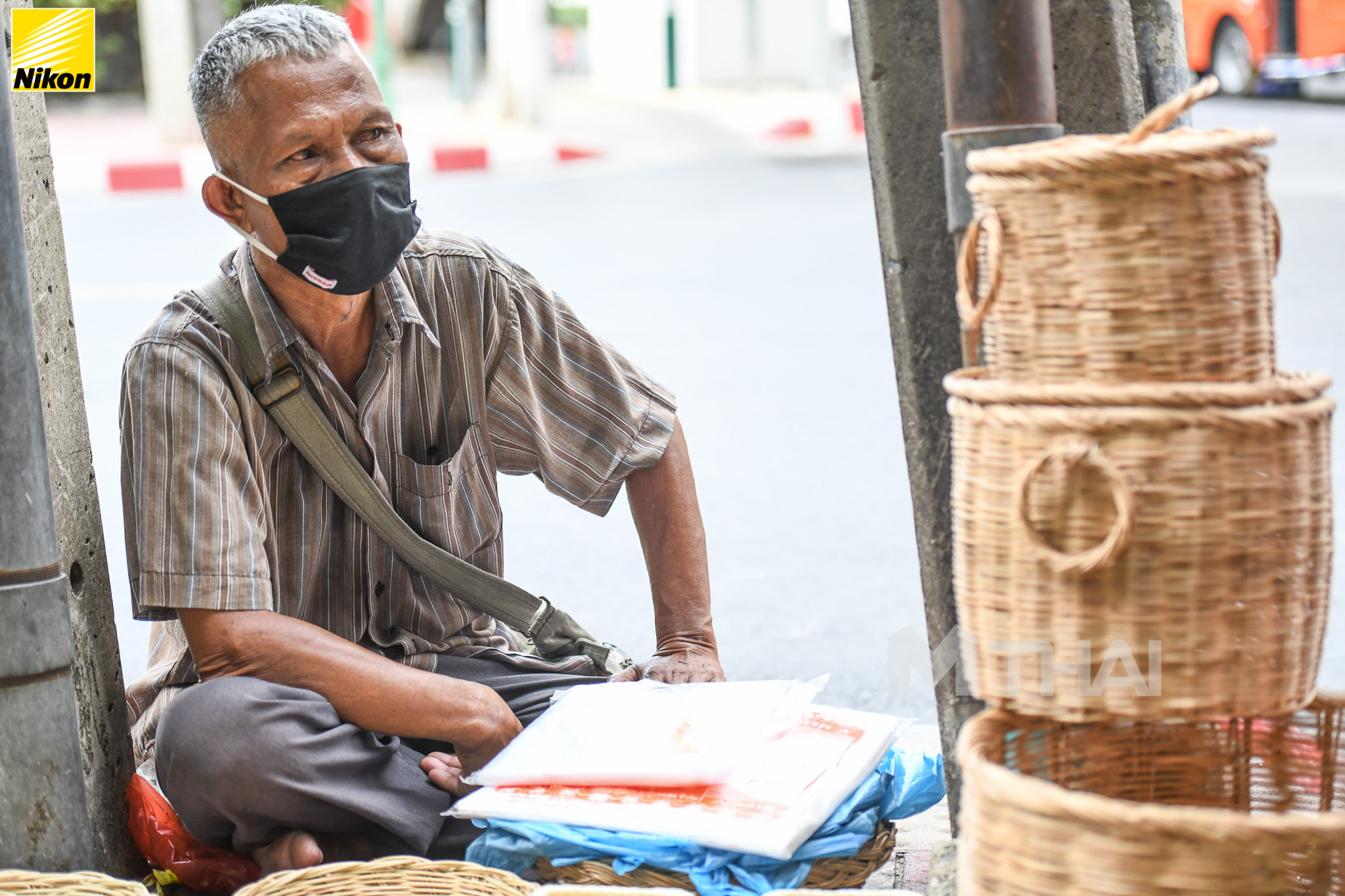 รูปภาพ ‘ลุงทองสุข’ ขายตะกร้าสาน หารายได้จุนเจือครอบครัว