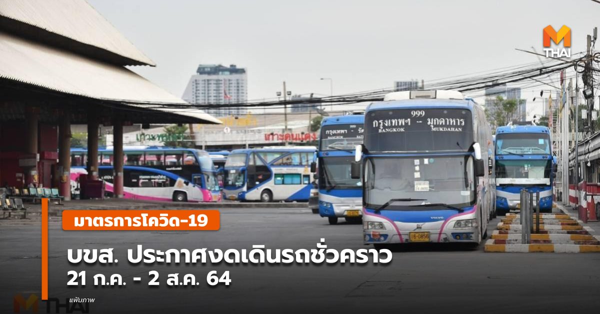 เพื่อควบคุมสถานการณ์การแพร่ระบาดฯ ดังกล่าว บขส. จึงขอแจ้งหยุดให้บริการเดินรถเส้นทางภาคเหนือ ภาคตะวันออกเฉียงเหนือและภาคตะวันออก และภาคใต้ ทุกเส้นทางชั่วคราว ตั้งแต่วันที่ 21 กรกฎาคม – 2 สิงหาคม 2564 หรือจนกว่าจะมีประกาศคำสั่งเปลี่ยนแปลง