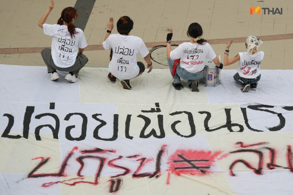 ทั้งนี้ระหว่างตีกลองกลุ่มราษฎร์ดรัมส์ได้ชูสามนิ้วขึ้นเหนือหัวแสดงออกเชิงสัญลักษณ์ และตะโกนพร้อมกันว่า “ ปล่อยเพื่อนเรา ” ขณะเดียวกันมีประชาชนยืนดูอยู่บนสกายวอล์คปทุมวัน ซึ่งกิจกรรมครั้งนี้ใช้เวลาประมาณ 10 นาที โดยมีเจ้าหน้าที่รักษาความปลอดภัยเป็นไปด้วยความเรียบร้อย