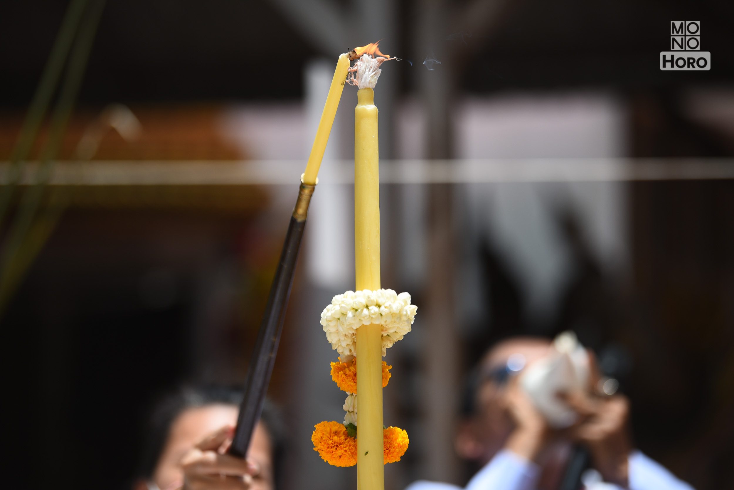- ประธานฝ่ายฆราวาส จุดเทียนชัยมงคลพิธีตามลำดับ