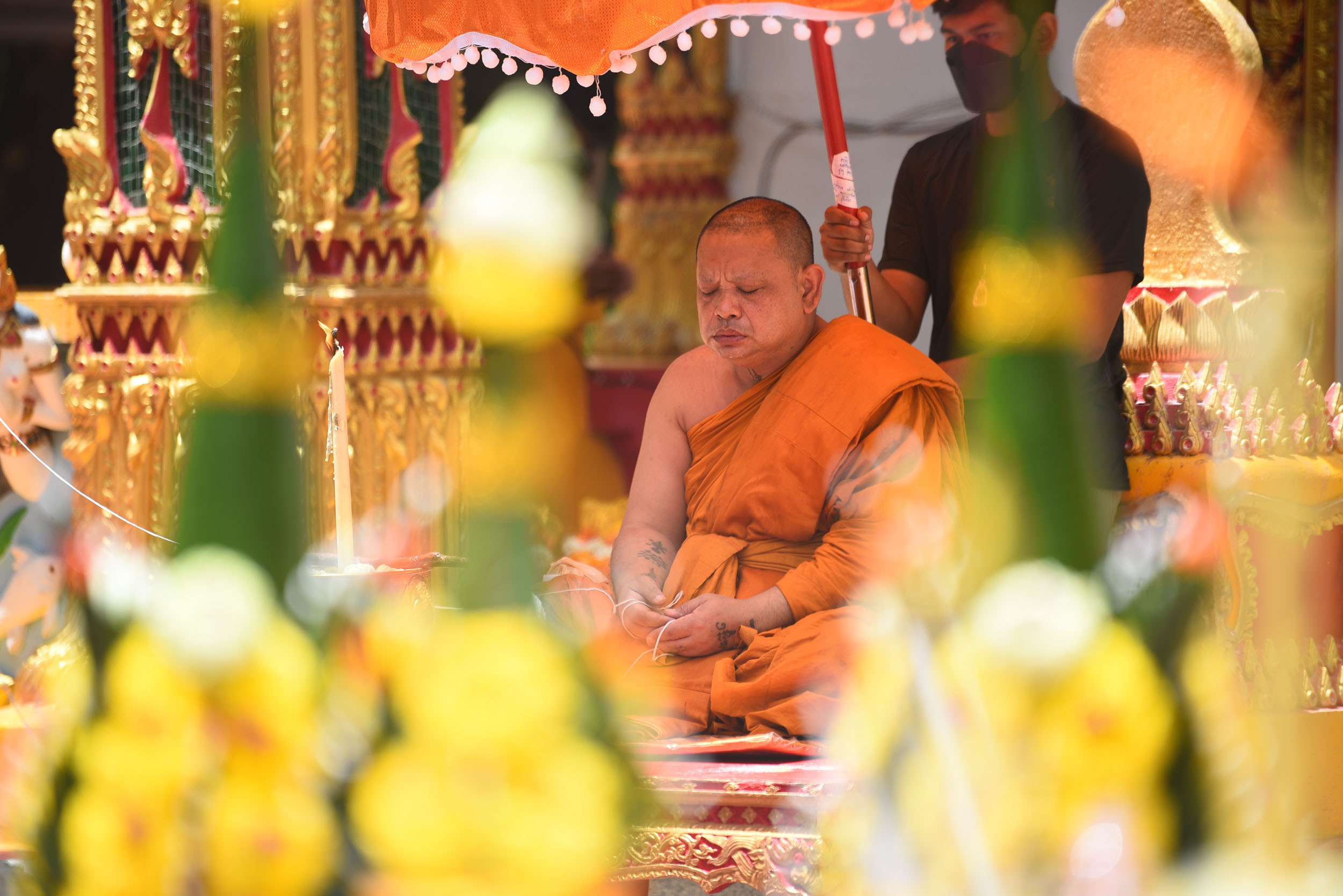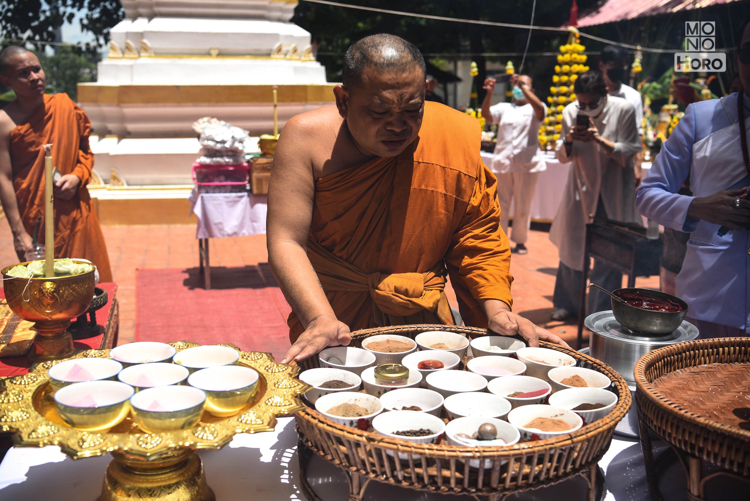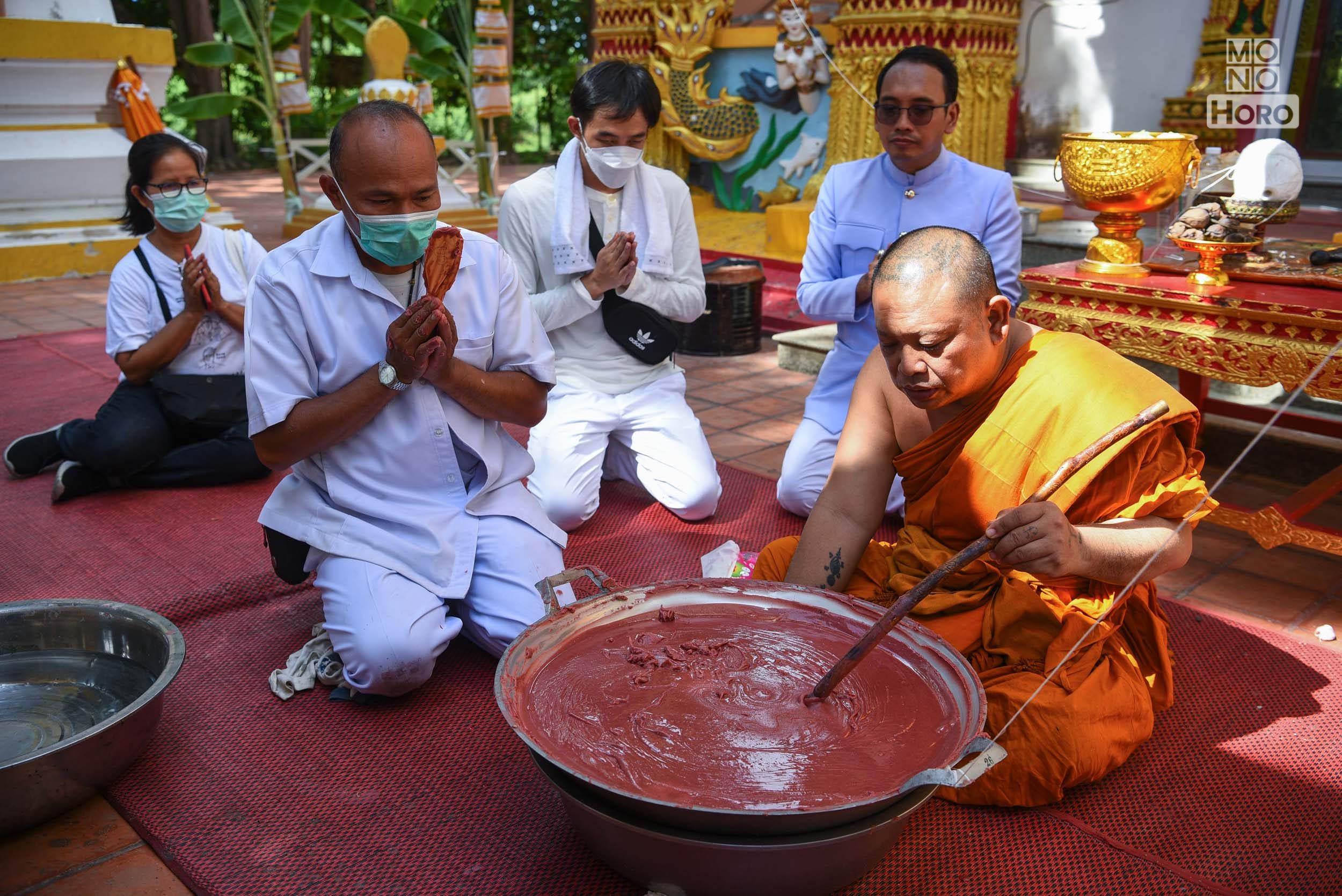 - พระครูปลัดสราวุธ ปัญญาวุธโธ (พระครูปืน) พร้อมคณะสงฆ์ร่วมเคี่ยวสีผึ้ง