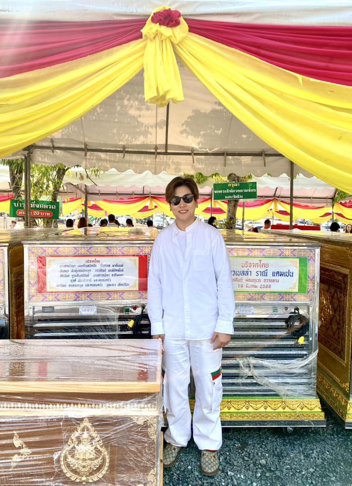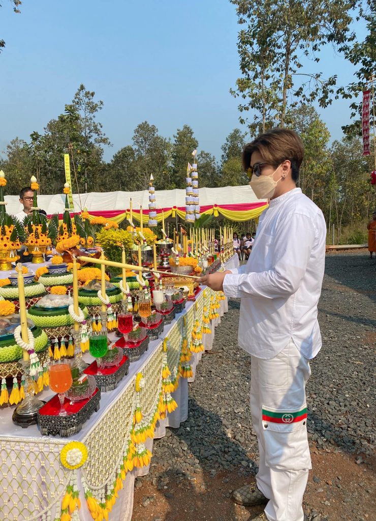 - “วันนี้เดินทางมาเชียงใหม่เพื่อร่วมเป็นเจ้าภาพและตัวแทนของน้องเบลล่าและชาวคณะในพิธีทำบุญวันครบรอบ ๔ ปี ม่อนกุเวร สถานพำนักสงฆ์สวนป่าพระมหาชนก และร่วมพิธีเททองหล่อพระประธาน พระสีวลี พระสังกัจจาย และองค์ปู่ภุชงค์นาคราช และเจ้าภาพถวายโลงเย็น ๕ ชุด โลงศพ ๔๐ โลง ไถ่ชีวิตโค ถวายเครื่องอุปโภคบริโภค (แจกทาน) จำนวน ๕๐๐ ครัวเรือนขออานิสงส์บุญนี้ส่งถึงแฟนๆของพลอยกับเบลทุกท่าน”