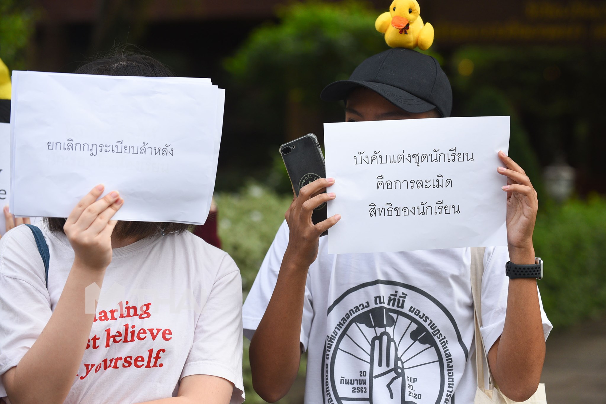 กลุ่มนักเรียน โรงเรียนบดินทรเดชา (สิงห์ สิงเสนี) ที่มีความเห็นต่าง ได้รวมตัวแต่งชุดไปรเวทมาโรงเรียนวันแรก