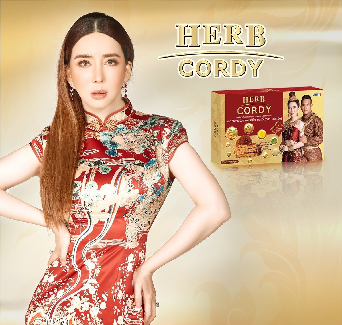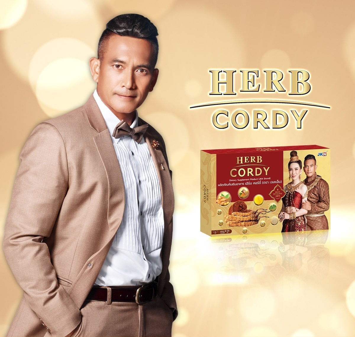 คุณจักรพงษ์ จักราจุฑาธิบดิ์ ประธานเจ้าหน้าที่บริหารและกรรมการผู้จัดการ บริษัท เจเคเอ็น โกลบอล มีเดีย จำกัด (มหาชน) หรือ JKN เผยว่า ได้มีการติดต่อผู้พันเบิร์ดมาสักระยะหนึ่งแล้วและก่อนที่จะได้มาร่วมงานกันก็ได้ส่งตัวผลิตภัณฑ์ “Herb Cordy – เฮิร์บ คอร์ดี้” ไปให้ทดลองเพื่อให้พิสูจน์ถึงผลลัพธ์ที่แท้จริง ก่อนที่จะตัดสินใจมาร่วมงานกันในฐานะพรีเซ็นเตอร์คนใหม่ในธีมชุดไทยซึ่งก็สนุกสนานมาก ผลิตภัณฑ์นี้มีความโดดเด่น เป็นผลิตภัณฑ์เสริมอาหารเพื่อการบำรุงสุขภาพจากสารสกัดถั่งเช่าแท้สายพันธุ์ทิเบต (Cordyceps Sinensis Extract) ผสมสมุนไพรสกัดจากธรรมชาติอีกหลายชนิดที่มีส่วนช่วยในการเสริมเรื่องภูมิคุ้มกัน และมีส่วนช่วยในการบำรุงสายตาและบำรุงร่างกาย ลดอาการภูมิแพ้ ลดความเหนื่อยล้า และอุดมไปด้วยวิตามินรวม 5 ชนิด (C, D3, B1, B6, B12) ช่วยเสริมการบำรุงร่างกายอย่างเต็มประสิทธิภาพ มีส่วนช่วยบำรุงระบบประสาทและสมอง และช่วยให้การนอนหลับลึกยาวนานขึ้นจากส่วนผสมของฟาร์ม่า กาบา