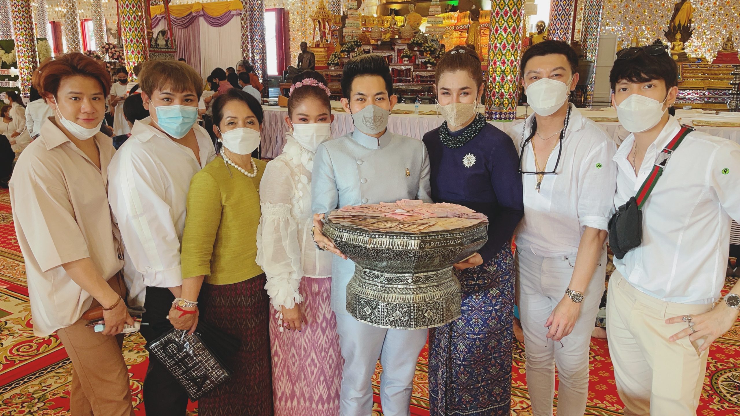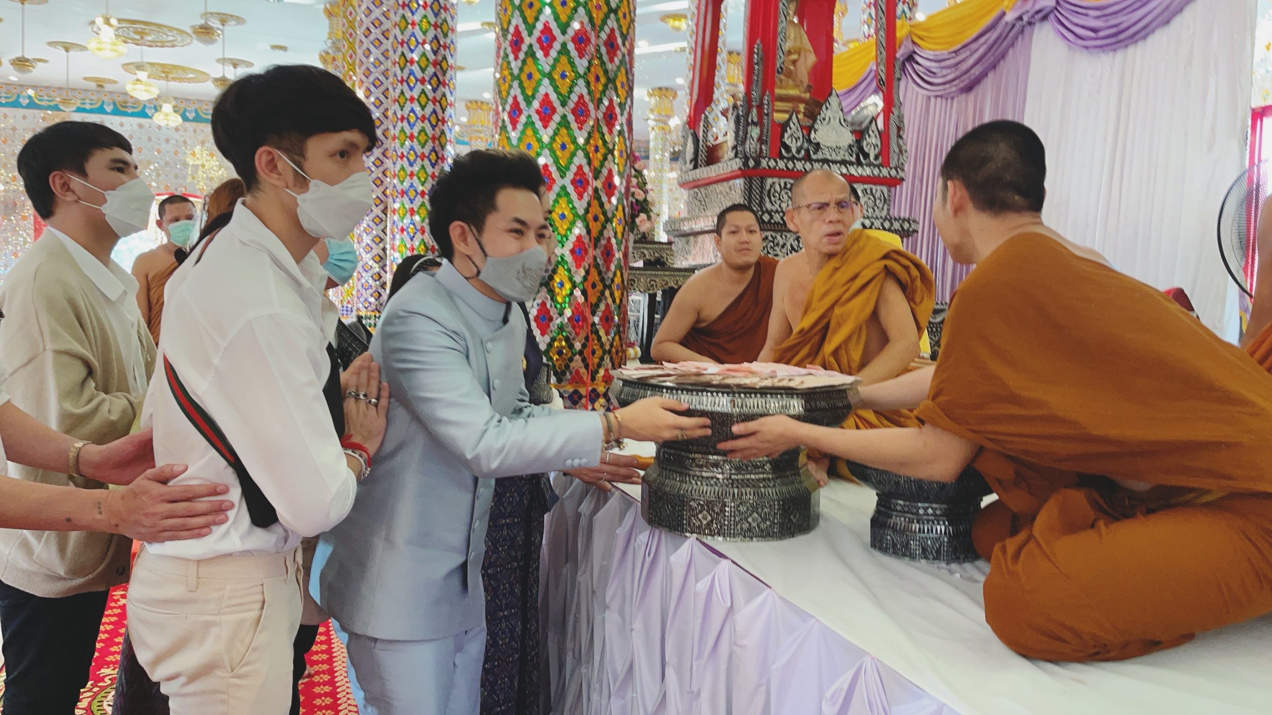 งานบุญใหญ่ครั้งนี้เพื่อนๆ ของเก่ง ซึ่งเป็นประธานฝ่ายฆราวาส ก็มาร่วมงานด้วย คือ ผิง สุภาวดี ทัพมาลัย (คนชวนเก่ง มางานบุญนี้) มีดาราดังร่วมงาน เช่น โก้ ธีรศักดิ์ พันธุจริยา, ปุ๋ย นิทัศน์, แพน สุรเกียรติ ส่วนพระเอกดัง เจษ เจษฎ์พิพัฒ ติละพรพัฒน์ ไม่ได้ร่วมงานด้วย ส่วนรองประธานฝ่ายฆราวาส เช่น ซาร่า คาซิงกินี่ และลูกๆ อยู่ที่ภูเก็ต น้องแม็กซ์เวลล์ ดิแองเจโล คาซิงกินี น้องเอมมิลี่ คาซิงกินี ไม่ได้มาร่วมงานนี้ด้วย
