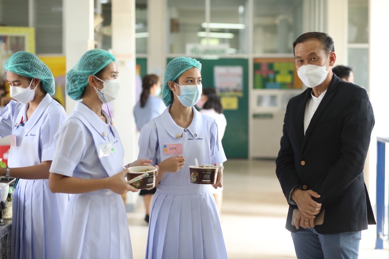 โดยมี นายแพทย์สรลักษณ์ มิ่งไทยสงค์ ผู้อำนวยการโรงพยาบาล แพทย์หญิงพัฒนี ศีตะจิตต์ สูติแพทย์ และ ผศ.ดร.ภาวิณี ศักดิ์สุนธรศิริ ผู้ช่วยศาสตราจารย์ภาควิชาวิศวกรรมเครื่องกล มหาวิทยาลัยบูรพา ถวายการต้อนรับ