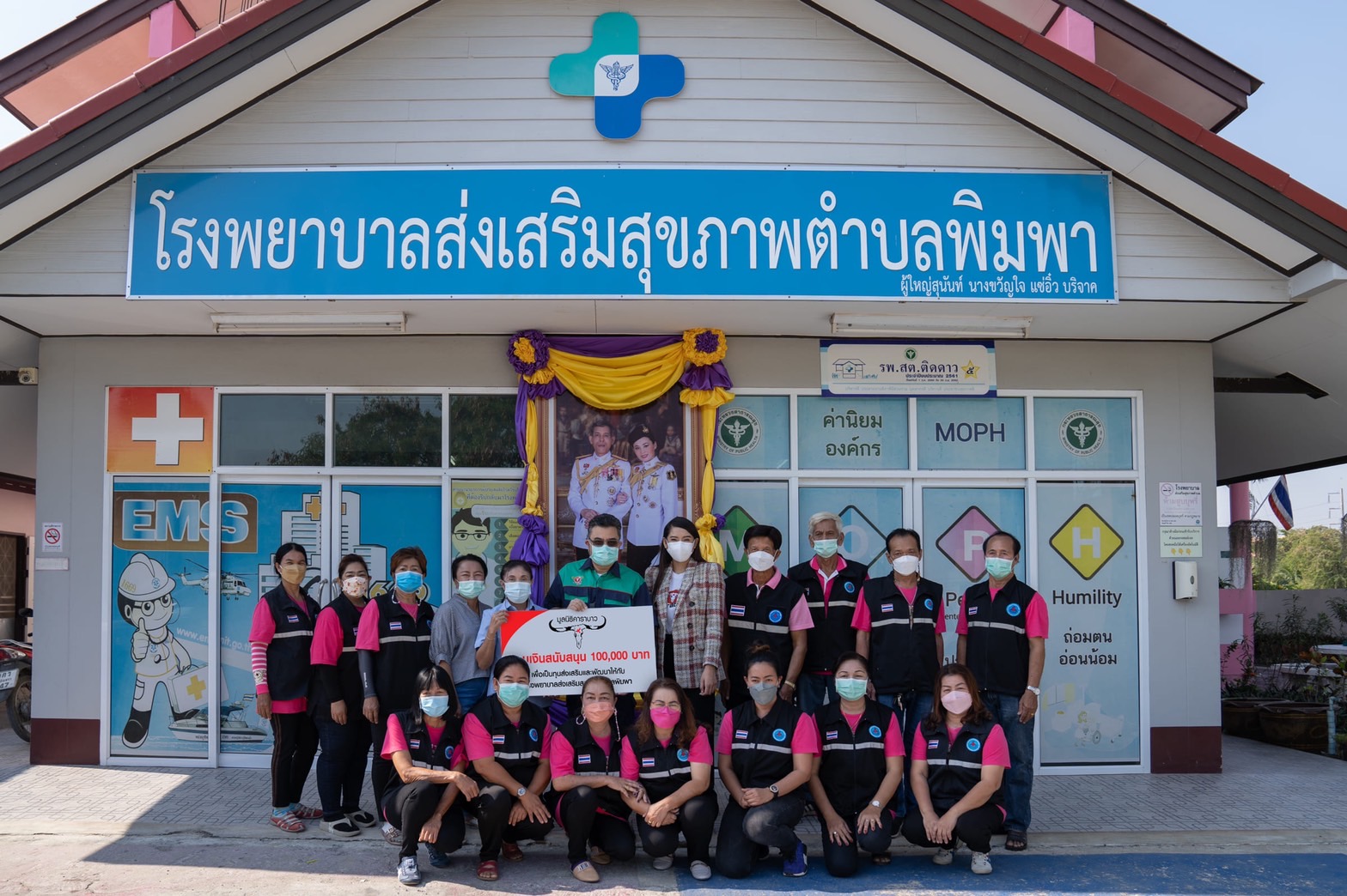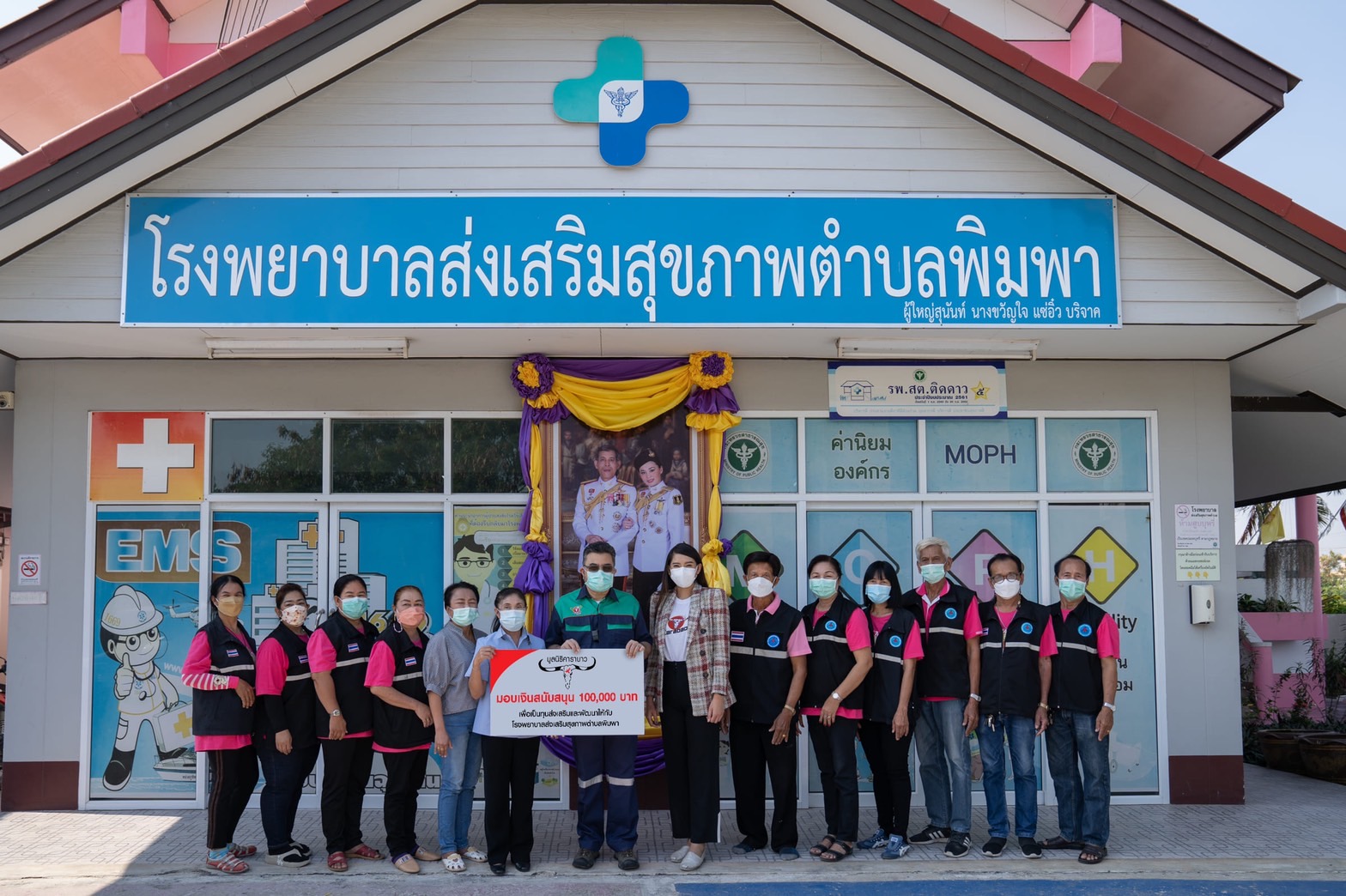 คุณกมลดิษฐ สมุทรโคจร กรรมการ และรองกรรมการผู้จัดการ บริษัท คาราบาวกรุ๊ป จำกัด (มหาชน) และ คุณกนกกร ใจชื่น ผู้จัดการฝ่ายประชาสัมพันธ์ บริษัท คาราบาวตะวันแดง จำกัด ตัวแทนมูลนิธิคาราบาวมอบเงินบริจาค 100,000 บาท เมื่อวันที่ 23 ธันวาคม 2564 ให้กับ โรงพยาบาลส่งเสริมสุขภาพตำบลพิมพา ซึ่งเป็นหน่วยงานท้องถิ่นที่ดูแล และให้บริการด้านสาธารณสุขแก่ประชาชนในพื้นที่เขตบางปะกง โดยมี คุณพรทิพย์ มิ่งเจริญ ผู้อำนวยการโรงพยาบาลส่งเสริมสุขภาพตำบลพิมพา และคณะทำงานเป็นผู้รับมอบ โดยในปัจจุบันโรงพยาบาลทำหน้าที่ส่งเสริมสุขภาพของประชาชนใน ตำบลพิมพา และให้บริการแก่ประชาชนทั่วไป ในเรื่องของการส่งเสริมสุขภาพ การป้องกันควบคุมโรค การรักษาพยาบาล และการปฐมพยาบาลเบื้องต้น