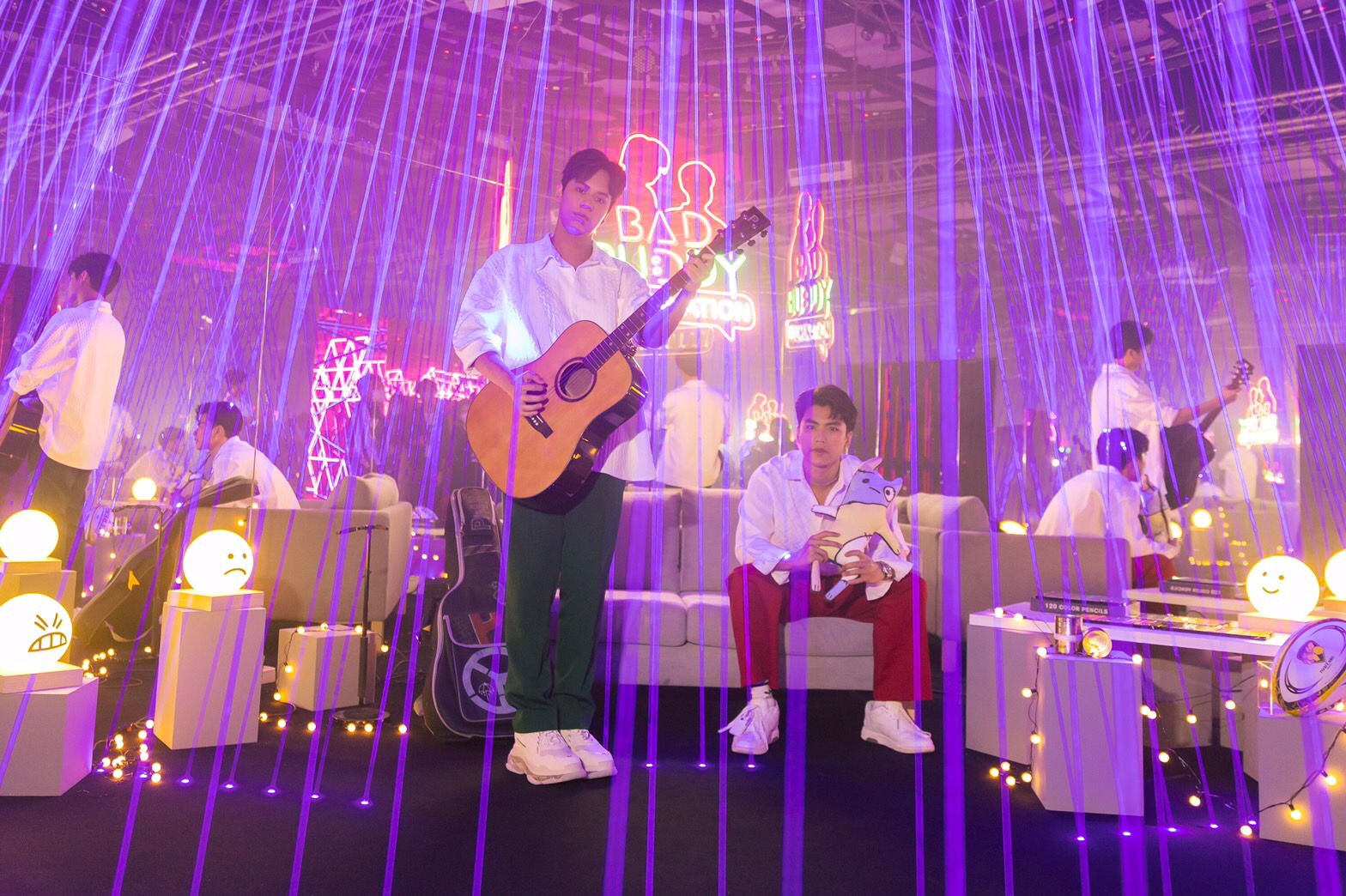 เปิดห้องสตาร์ทความฟินไปกับคู่จิ้นคู่ฮอต “โอม-นนน” พาชมความประทับใจขั้นสุด เริ่มด้วยห้องแห่งความทรงจำ “ROOM 1 : GREEN RED” ที่ยิงเลเซอร์ไฟสีเขียวแดงทะลุม่านต้อนรับด้วยคำว่า “BAD BUDDY ):)” ต่อด้วย “ROOM 2 : BUDDY ROOM” อบอวลไปด้วยบรรยากาศห้องของ “ปราณ” (นนน-กรภัทร์) ตกแต่งด้วย Symbolic ต่างๆ ที่ยกจากในซีรีส์มาไว้ที่นี่แบบจัดเต็ม จากนั้นทั้งคู่ก็พาไปสัมผัสความรู้สึกของมิตรภาพใน “ROOM 3 : FRIEND I UNFRIEND” และ “ROOM 4 : THE SUN, THE BREEZE, THE SEA, YOU AND ME” ที่จำลองซีนทะเลสุดประทับใจที่ทำเอาแฟนๆ หัวใจเต้นแรงและฟินขั้นสุดอีกครั้ง ต่อด้วย “ROOM 5 : SECRET DANCE” ที่จะมีจอภาพ “โอม-นนน” เต้นท่าประกอบเพลงซีรีส์ พร้อมมีประโยคแห่งความทรงจำบนผนังห้องให้นึกถึงวันวานอย่างอบอุ่นหัวใจ รวมถึง “ROOM 6 : NEVER ENDING STORY” ที่จะมีภาพต่างๆ ในทุกความทรงจำจากในซีรีส์นำเสนอในรูปแบบ kaleidoscope สุดว้าว และ “ROOM 7 : THE REUNION” ภาพระเบียงห้อง “ภัทร” (โอม-ภวัต) และ “ปราณ” (นนน-กรภัทร์) ให้แฟนๆ ได้ถ่ายรูป และเกมสนุกๆ ให้ได้ย้อนความประทับใจไปกับ เกม “รักนะครับเพื่อน” โดยปาลูกรักบี้ใส่น้องเน่า หรือ “โอม-นนน” ในชุดรักบี้ และปิดท้ายด้วย “ROOM 8 : Good Luck, Buddy” ที่รวบรวมภาพซีนประทับใจ ภาพเบื้องหลัง ในรูปแบบ Digital Art สุดล้ำ ในโทนสีเขียวแดง นอกจากนี้ก่อนออกจาก Exhibition ยังมีการจัดแสดงเสื้อชุดต่างๆ ของ “โอม-นนน” ไม่ว่าจะเป็น เสื้อช็อป,ชุดแข่งรักบี้, ชุดซีนทะเล ฯลฯ ที่ไม่ได้อยู่แค่เพียงในหน้าจอมาให้ชมกันแบบจุใจเลยทีเดียว