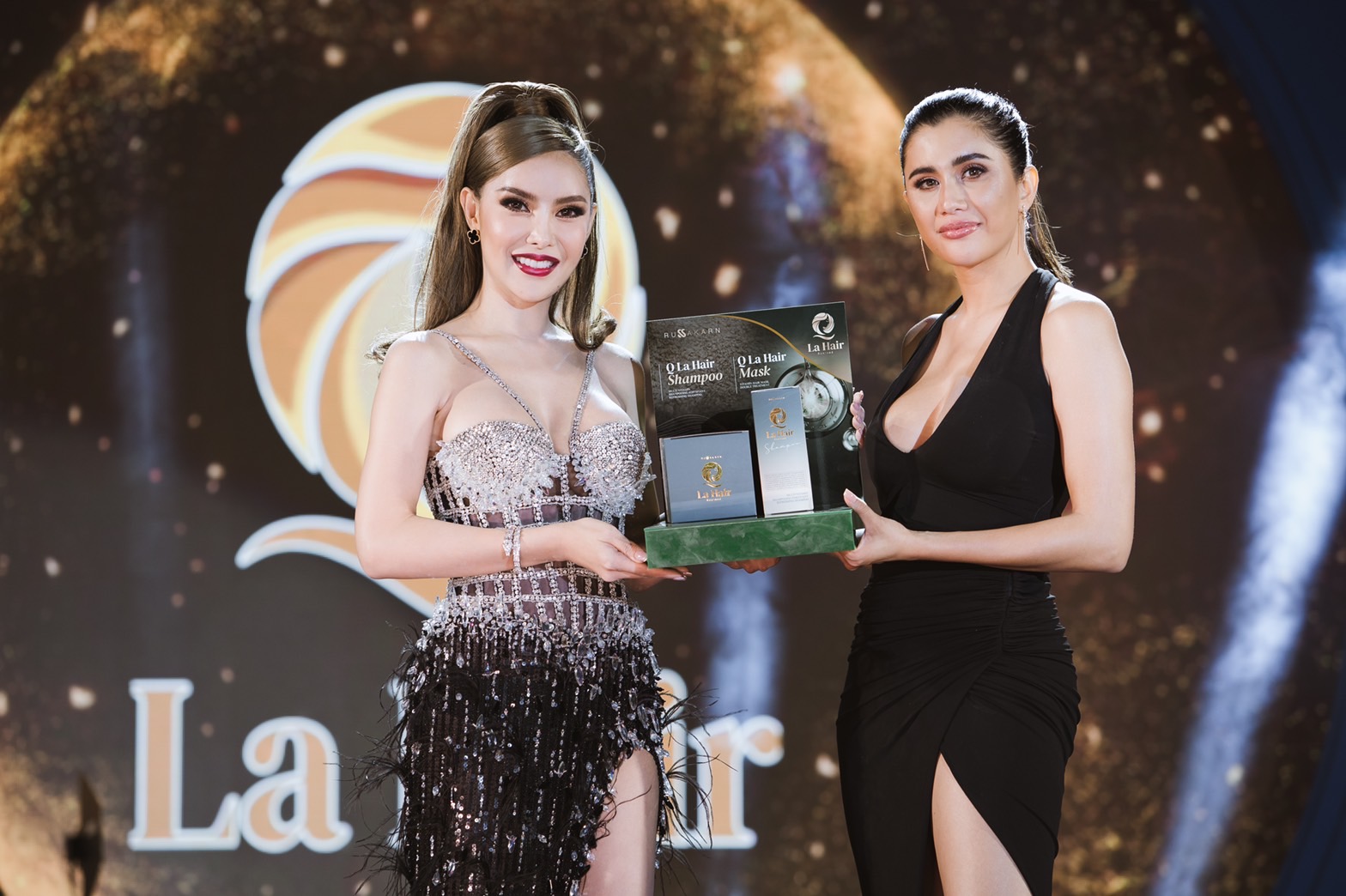 ผู้บริหารคนสวย “คุณแอม-รัสกาญจน์” เผยถึงงานครั้งนี้ไว้ว่า “การจัดงานในครั้งนี้เป็นงานฉลองความสำเร็จ เปิดอาณาจักรของบริษัทเรา มีมูลค่ากว่า 150 ล้านบาท เป็นธุรกิจความงามแบบครบวงจรที่เราตั้งใจทำมาเพื่อคนไทย ที่เลือกมาเปิดตัวที่บ้านเกิดแอมที่นครสวรรค์เพราะเราอยากโชว์ความแข็งแกร่งของแบรนด์ และอยากนำเสนอการสร้างงาน สร้างอาชีพเรากระจายรายได้และอาชีพให้ทุกคนในชุมชนของเรา และพร้อมขยายความสำเร็จไปทั่วประเทศ ยอดขายเราโตขึ้นอย่างต่อเนื่อง พร้อมพรีเซนเตอร์ที่ปังมากๆ เริ่มที่ คิวลาแฮร์ สินค้าใหม่ของเราเป็นตัวช่วยในการบำรุงเส้นผม เลือกน้องปูมาเปนพรีเซนเตอร์เพราะตอบโจทย์มากๆ น้องปูใช้จริงตอนที่ไปทำงานที่ต่างประเทศและทดลองมายาวนาน เลยรับเป็นพรีเซนเตอร์ พร้อมขยายสินค้าไปวางขายทั่วโลก ในส่วน คิวเซรั่ม เราเลือกพี่สุนารีเพราะพี่เขาเป็นคนที่สวยเป๊ะ และกาลเวลาไม่สามารถทำอะไรเขาได้เลย มีโอกาสส่งสินค้าไปให้พี่เขาใช้จริงๆ พี่สุโอเคกับสินค้ามาก ใช้จริงมาตลอดเลยเลยรับเป็นพรีเซนเตอร์ทันที”