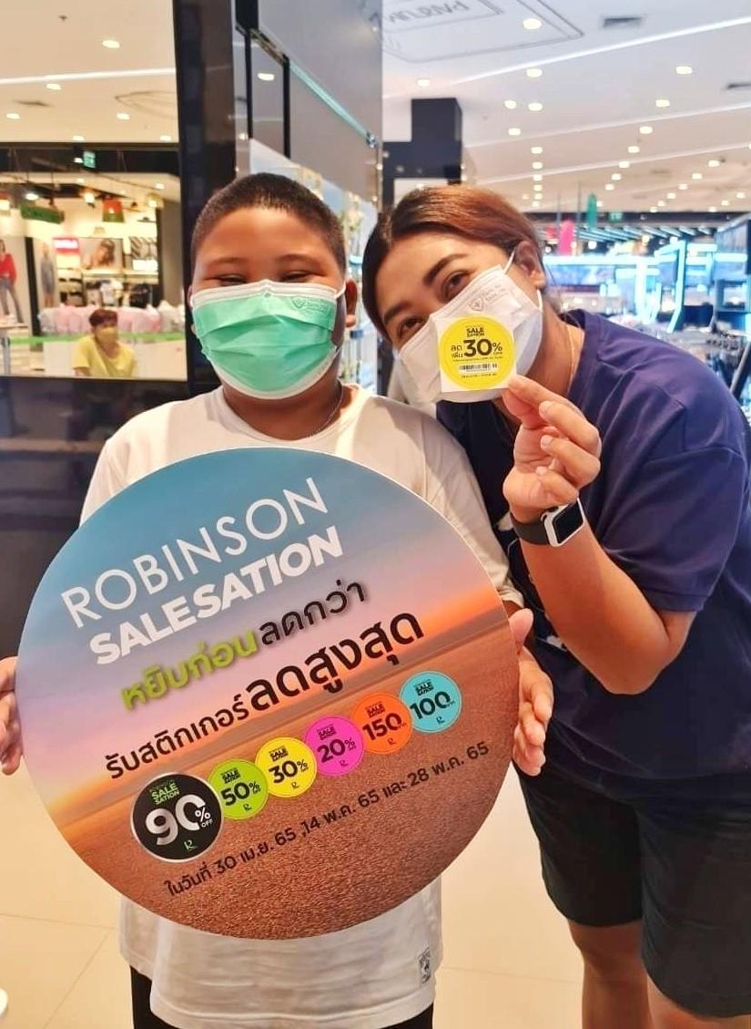 ห้างสรรพสินค้าโรบินสัน ผนึกกำลัง ศูนย์การค้าโรบินสันไลฟ์สไตล์ ในเครือเซ็นทรัล รีเทล สร้างประสบการณ์ความสนุกครั้งใหม่ของการช้อปปิ้งให้ครอบครัวสายช้อปได้ฟินทั่วไทย ด้วยการเปิดตัวซิกเนเจอร์แคมเปญสุดยิ่งใหญ่แห่งปี “ROBINSON / ROBINSON LIFESTYLE SALESATION (โรบินสัน / โรบินสันไลฟ์สไตล์ เซลเซชั่น) หยิบก่อนลดกว่า” ครั้งแรก! ของปรากฏการณ์ “สติ๊กเกอร์ส่วนลด” ที่โลกต้องจำ สูงสุดถึง 90% สำหรับช้อปสินค้าในห้างฯ และส่วนลดสำหรับร้านค้าที่ร่วมรายการภายในศูนย์การค้า รวมทั้งดีลโปรโมชั่นสุดปัง และสิทธิพิเศษอีกมากมายสำหรับลูกค้าเดอะวัน ดอลฟิน วอลเล็ต เอไอเอส บัตรเครดิต และร้านค้าชั้นนำที่ร่วมรายการ ตั้งแต่วันที่ 29 เม.ย. 65 – 31 พ.ค. 65 ที่ห้างโรบินสัน รวมทั้งทุกช่องทางการช้อปปิ้งสุดสะดวกของห้างฯ และศูนย์การค้าโรบินสันไลฟ์สไตล์ ทุกสาขาทั่วประเทศ