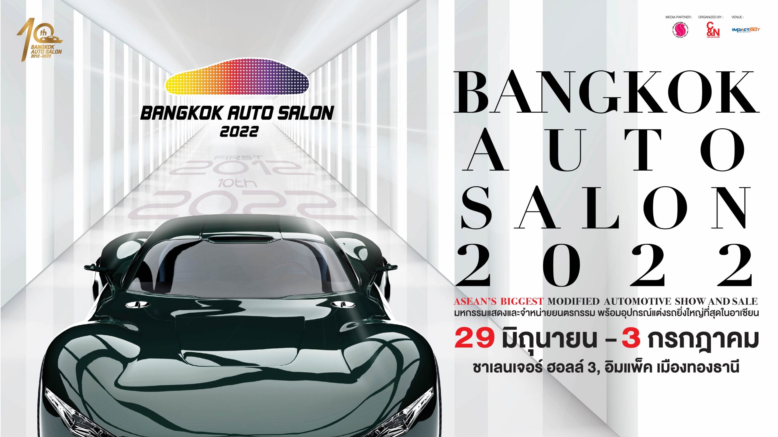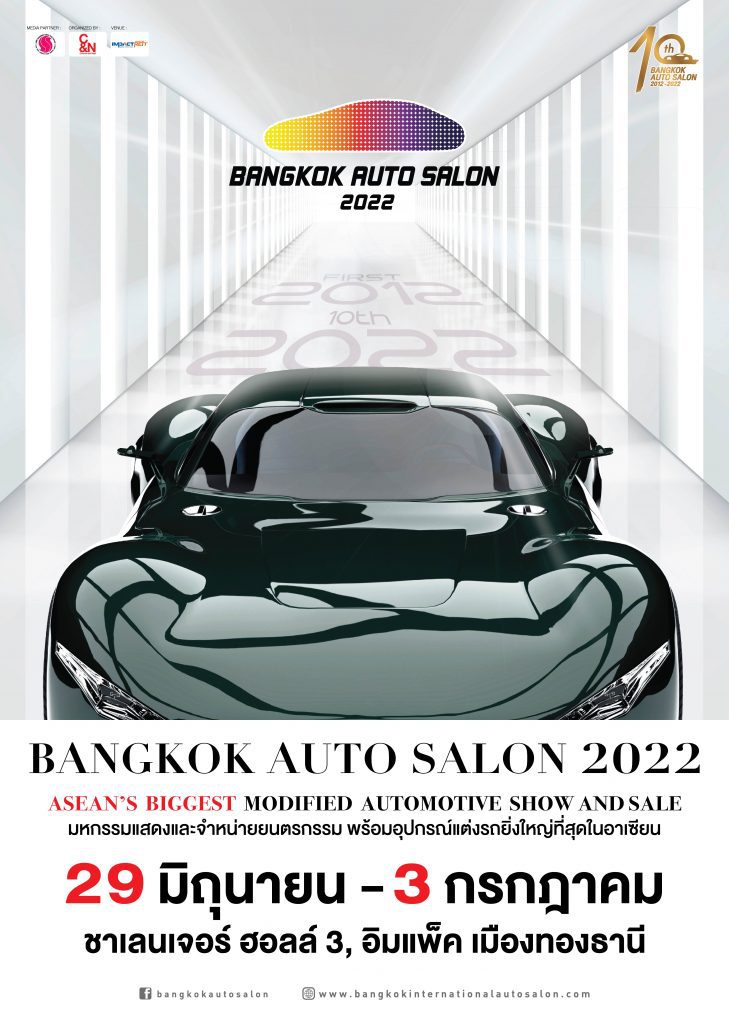 ห้ามพลาด ‘แบงค็อก ออโต ซาลอน 2022’ มหกรรมแสดงและจำหน่ายยนตรกรรมพร้อมอุปกรณ์ตกแต่งรถที่ยิ่งใหญ่ที่สุดในอาเซียน (ASEAN’S BIGGEST MODIFIED AUTOMOTIVE SHOW AND SALE) วันพุธที่ 29 มิถุนายน – วันอาทิตย์ที่ 3 กรกฎาคม 2565 ณ ชาเลนเจอร์ฮอลล์ 3 อิมแพ็ค เมืองทองธานี สอบถามรายละเอียดเพิ่มเติมได้ทาง www.bangkokinternationalautosalon.com