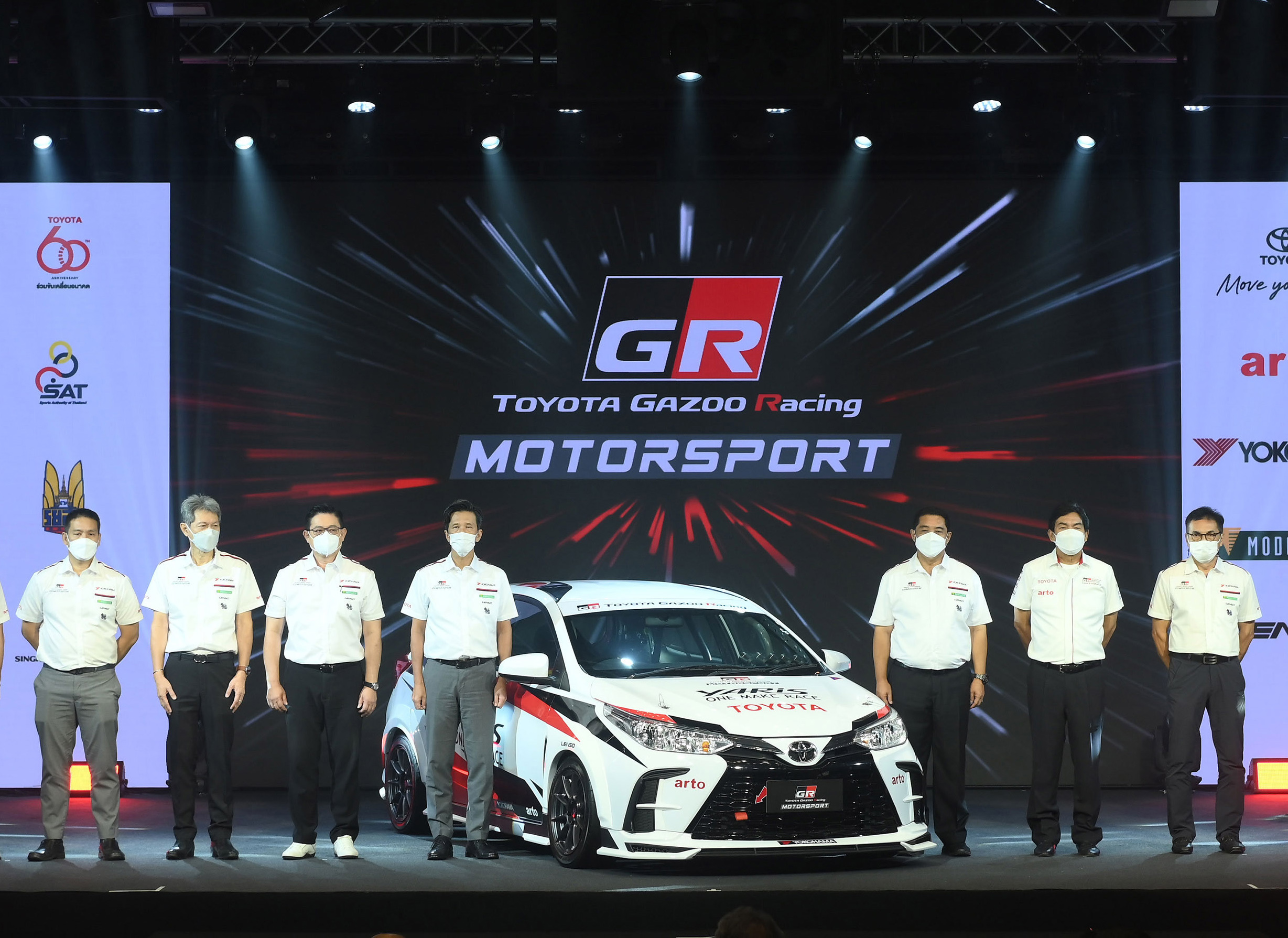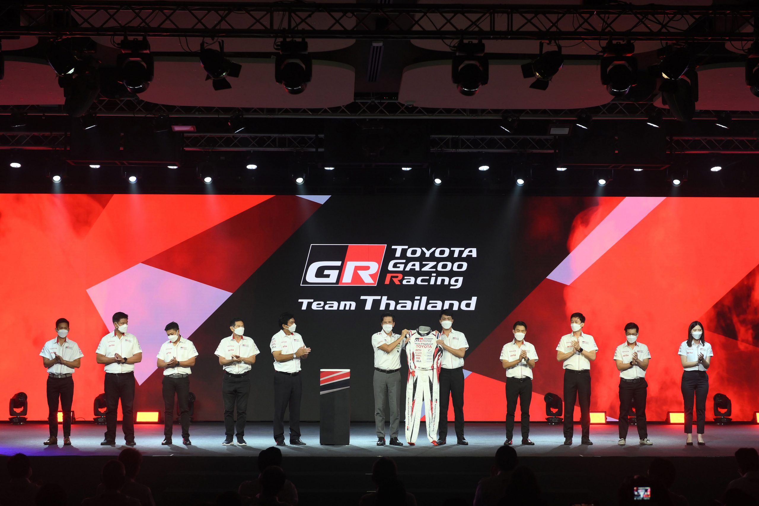 มร.โนริอากิ ยามาชิตะ กรรมการผู้จัดการใหญ่ บริษัท โตโยต้า มอเตอร์ ประเทศไทย จำกัด พร้อมด้วย นายสนธยา คุณปลื้ม นายกสมาคมราชยานยนต์สมาคมแห่งประเทศไทยในพระบรมราชูปถัมภ์ สมาคมกีฬา และ นายสุรศักดิ์ สุทองวัน รองกรรมการผู้จัดการใหญ่ บริษัท โตโยต้า มอเตอร์ ประเทศไทย จำกัด ร่วมแถลงข่าวกิจกรรม “Toyota Gazoo Racing Motorsport 2022 : Pushing the limits to race your ambition” โดยมีแขกผู้มีเกียรติ นักแข่งดารา มารี เบรินเนอร์ และ ปังปอนด์ อัครวุฒิ พร้อมด้วยเหล่านักแข่งวันเมคเรซ ร่วมงาน ณ TOYOTA ALIVE ถนนบางนา-ตราด กม.ที่ 3 กรุงเทพฯ