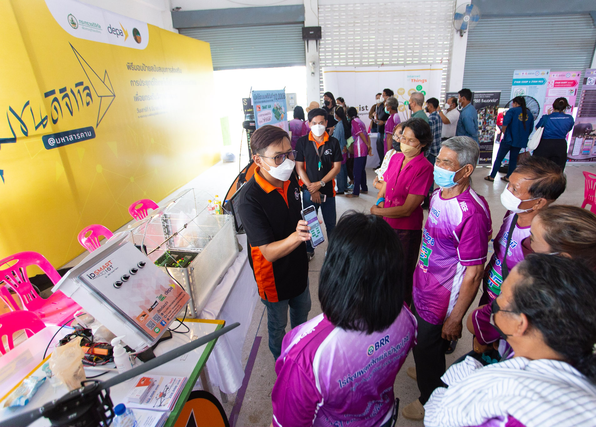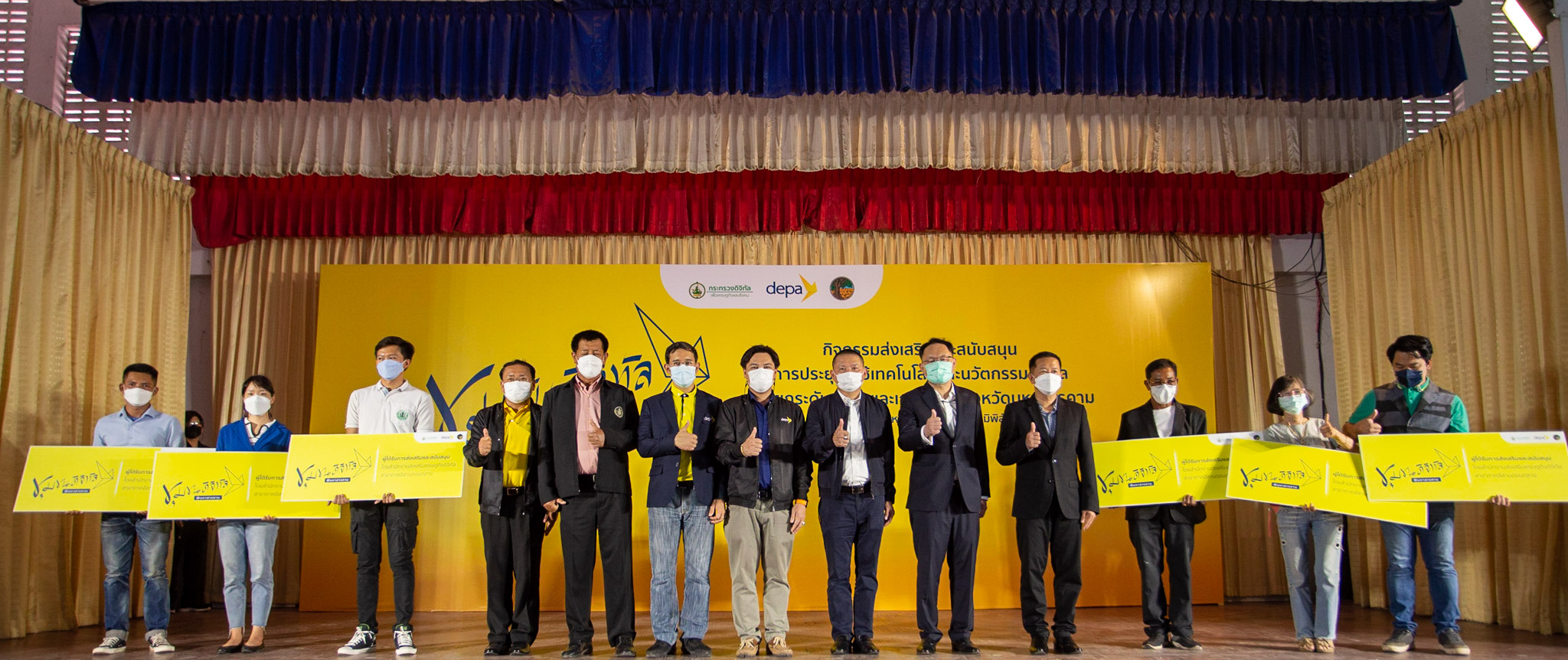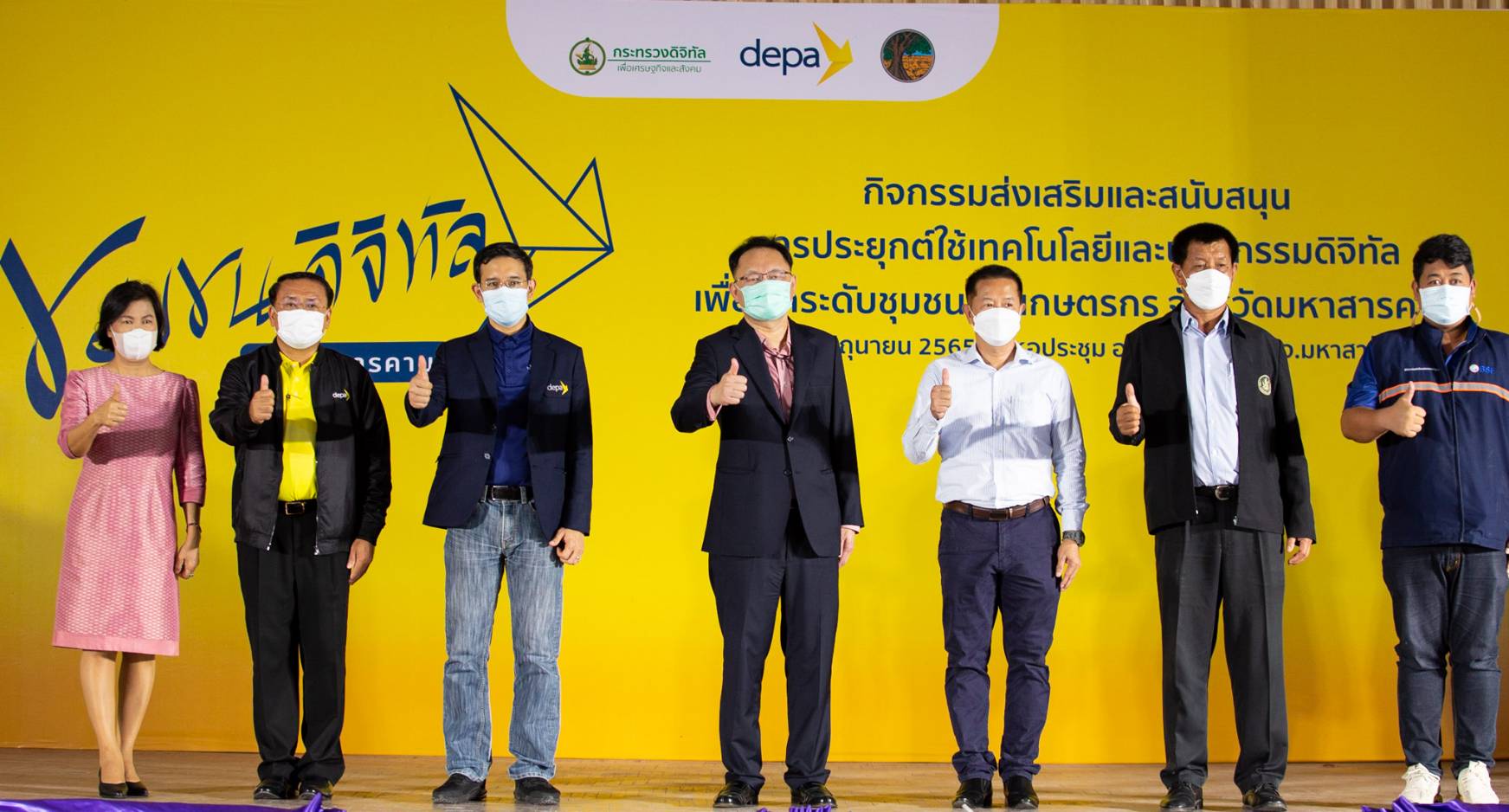 5 มิถุนายน 2565, จังหวัดมหาสารคาม – ดีป้า ร่วมกับ จังหวัดมหาสารคาม เดินหน้าส่งเสริมการประยุกต์ใช้เทคโนโลยีดิจิทัลแก่เกษตรกร และวิสาหกิจชุมชนในจังหวัดมหาสารคามและพื้นที่ใกล้เคียง ผ่านกิจกรรมการส่งเสริมและสนับสนุนการประยุกต์ใช้เทคโนโลยีดิจิทัล และการจับคู่เจรจาธุรกิจ เพื่อยกระดับเกษตรกร และวิสาหกิจชุมชนในจังหวัดมหาสารคาม ซึ่งผู้ร่วมงานได้พบกับผู้ให้บริการดิจิทัลด้านเกษตรอัจฉริยะ และเลือกเทคโนโลยีดิจิทัลที่เหมาะสมมาประยุกต์ใช้บริหารจัดการกระบวนการเพาะปลูกและดูแลผลผลิต เตรียมความพร้อมสู่ชุมชนดิจิทัล และร่วมขับเคลื่อนจังหวัดสู่การเป็นเมืองอัจฉริยะน่าอยู่ต่อไป