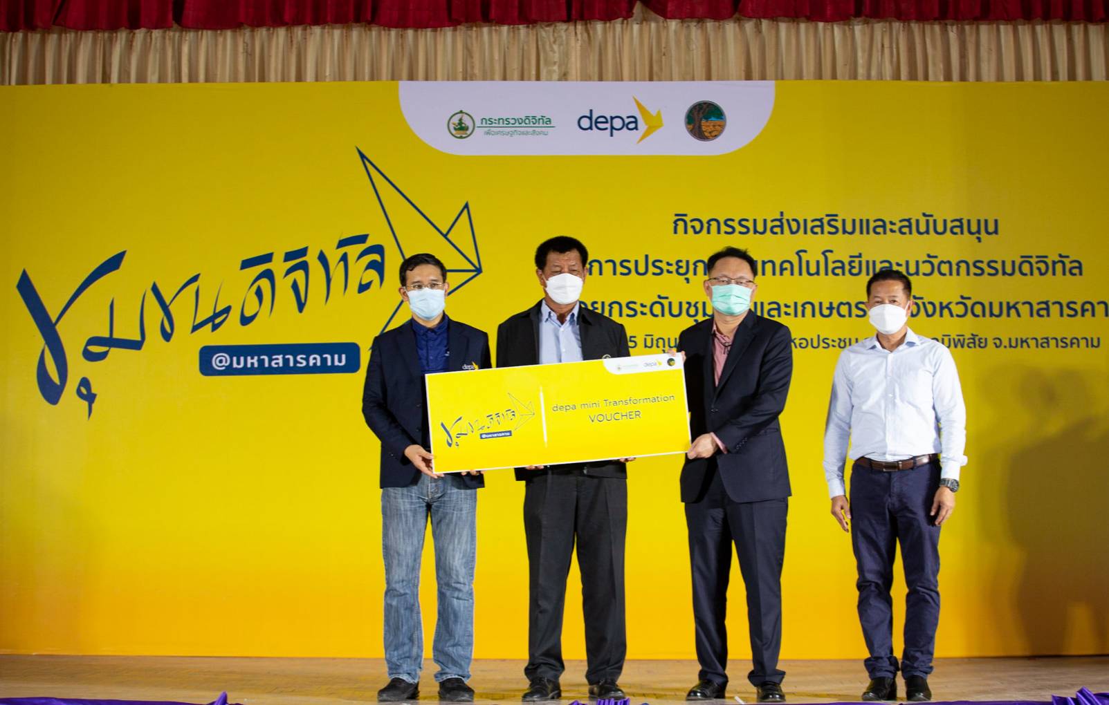 ล่าสุด ดีป้า ร่วมกับ จังหวัดมหาสารคาม จัดกิจกรรมการส่งเสริมและสนับสนุนการประยุกต์ใช้เทคโนโลยีดิจิทัล และการจับคู่เจรจาธุรกิจ (Business Matching) คูปองดิจิทัล เพื่อยกระดับเกษตรกร และวิสาหกิจชุมชนในจังหวัดมหาสารคาม โดยได้รับเกียรติจาก นายวิวัฒน์ อินทร์ไทยวงศ์ รองผู้ว่าราชการจังหวัดมหาสารคาม เป็นประธานในพิธีเปิดกิจกรรม โดยมี นายยุทธพงศ์ จรัสเสถียร สมาชิกสภาผู้แทนราษฎรจังหวัดมหาสารคาม นายสมพร นามพิลา เกษตรจังหวัดมหาสารคาม นายพรชัย หอมชื่น ผู้ช่วยผู้อำนวยการใหญ่ กลุ่มงานกิจการสาขา ดร.ปรีสาร รักวาทิน รักษาการผู้ช่วยผู้อำนวยการใหญ่ กลุ่มงานส่งเสริมการประยุกต์ใช้ดิจิทัล พนักงาน ดีป้า สาขาภาคอีสานตอนกลาง ผู้แทนจากหน่วยงานในพื้นที่ ทั้งภาครัฐและภาคเอกชน สมาคมเพื่อส่งเสริมการประกอบสัมมาชีพ (RSA) ผู้แทนวิสาหกิจชุมชน เกษตรกร ผู้ให้บริการดิจิทัล (Digital Provider) และประชาชนที่สนใจ ทั้งในจังหวัดมหาสารคามและพื้นที่ใกล้เคียงร่วมกิจกรรมโดยพร้อมเพรียง