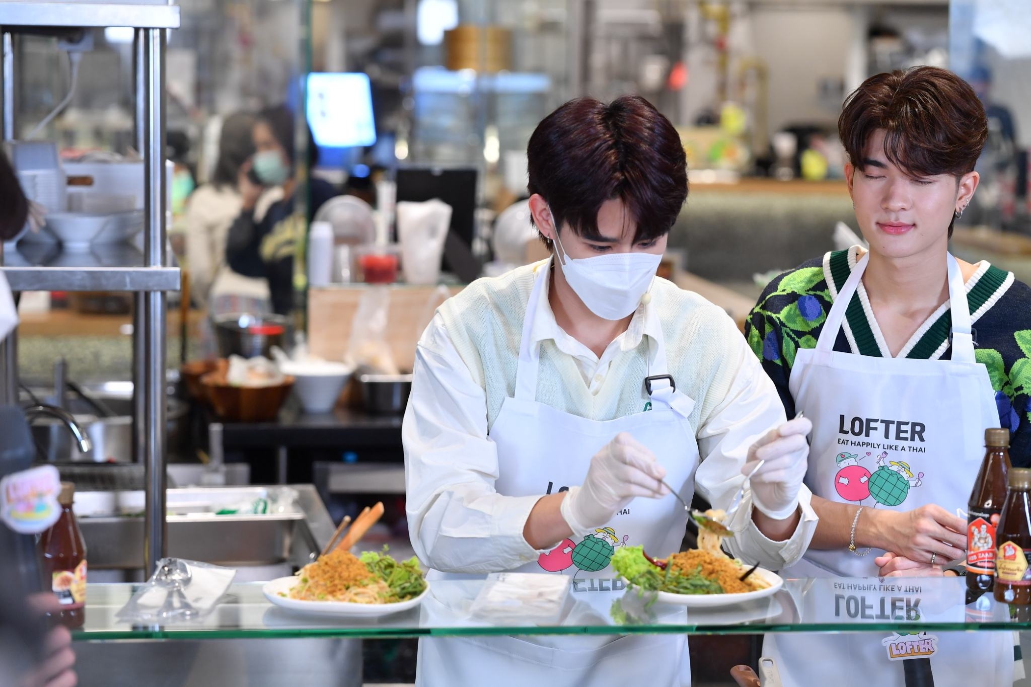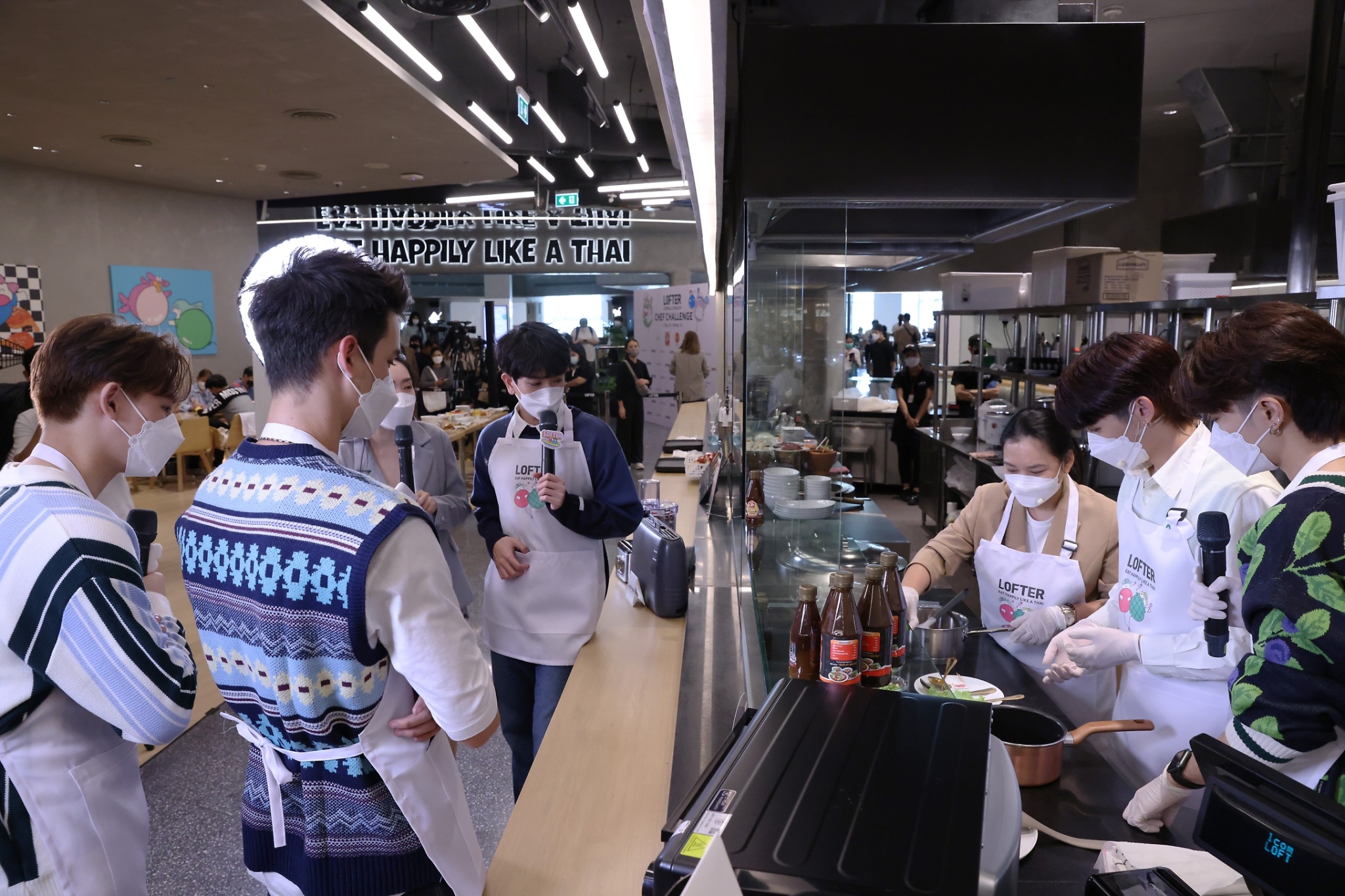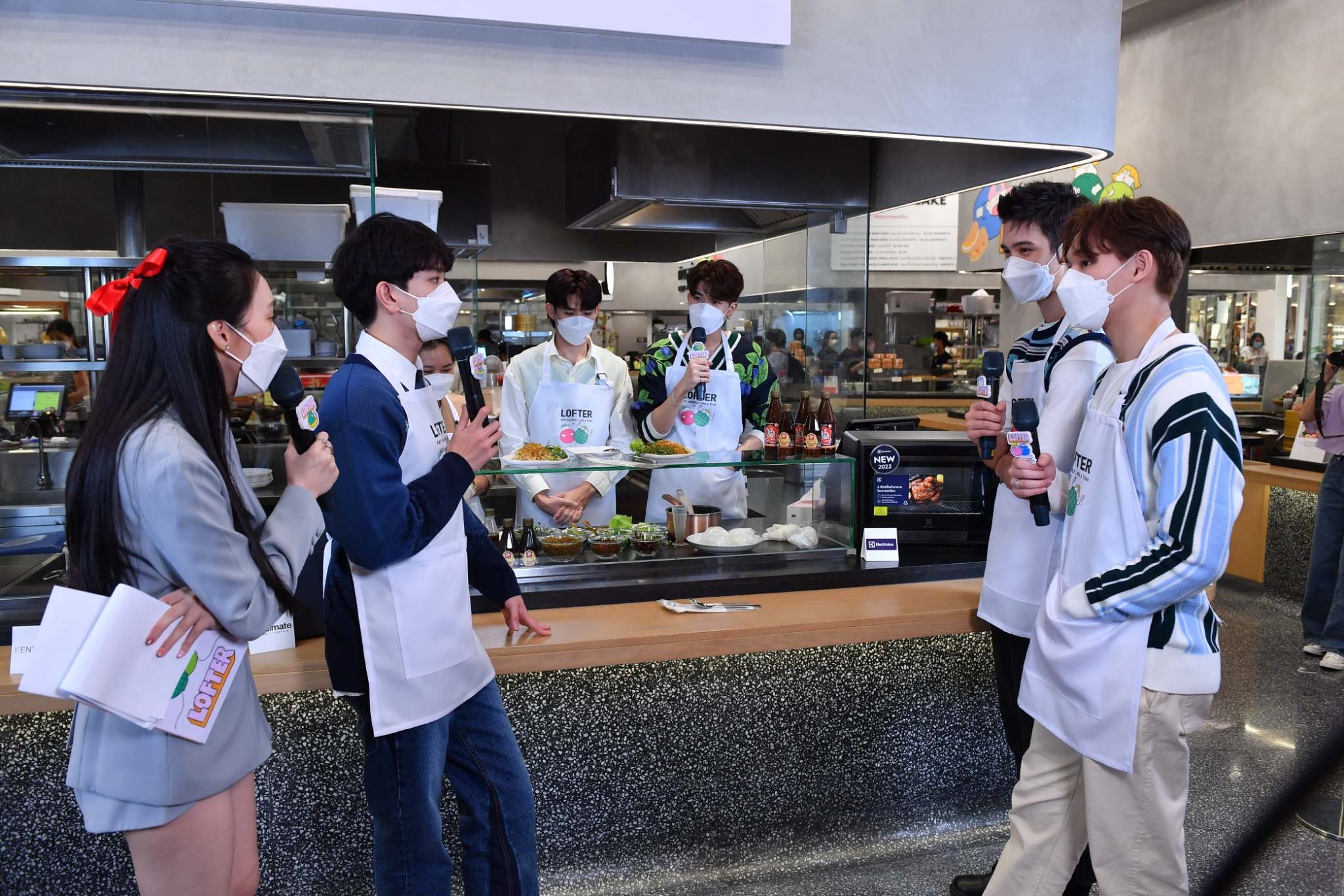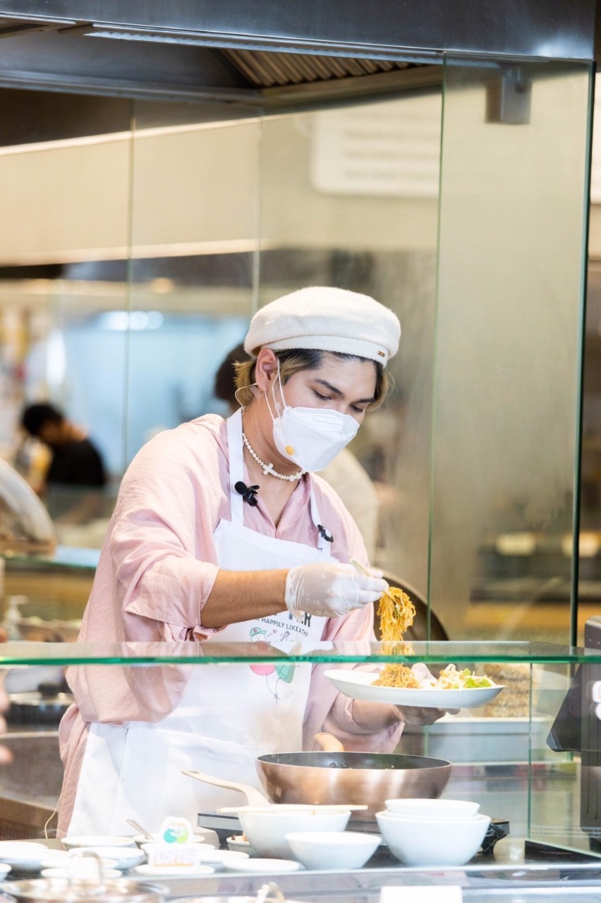 พร้อมร่วมทำเมนู “ยำขนมจีนปลาดุกกรอบ” เมนูซิกเนเจอร์สุดแซ่บจากร้าน “แอบแซ่บ สรงประภา” ซึ่งหนุ่มๆ ตั้งใจเรียนรู้พร้อมโชว์เสน่ห์ปลายจวัก รวมถึงประลองฝีมือการทำอาหารกันอย่างสุดฤทธิ์ งานนี้แต่ละคนสวมมาดเชฟมือโปร โชว์ลีลาทำอาหารได้อย่างคล่องแคล่วท่ามกลางแฟนๆ ที่ส่งเสียงเชียร์ไม่ขาด ส่วนเรื่องรสชาติไม่ต้องพูดถึง การันตีความอร่อยด้วยสูตรลับจากร้านที่มีทีเด็ดเฉพาะตัวอยู่ที่น้ำยำขนมจีน และไฮไลท์คือปลาดุกกรอบที่ไม่ได้ผสมแป้งและทอดน้ำมันแต่ใช้วิธีเฉพาะโดยการคั่วจนแห้ง เรียกว่าทำเอาแฟนๆ อยากมาลองลิ้มชิมรสเมนูเด็ดนี้ตามรอยหนุ่มๆ กันเลยทีเดียว