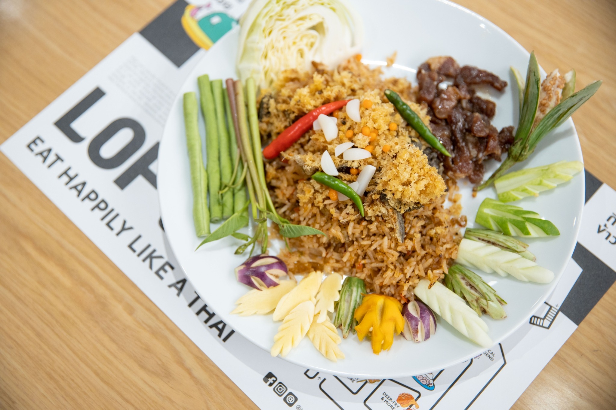 ต่อเนื่องกับคู่ชาเล้นจ์ที่ 2 เมื่อนักแสดงสาวสวย พาย – พิมพ์พัชร พัชรเสวี พักยกการแสดงมาโชว์เสน่ห์ปลายจวักกับเมนู “ข้าวผัดน้ำพริกลงเรือ” ดวลฝีมือกับเชฟจากร้าน “หลายรส” ร้านอาหารไทยโบราณที่เลื่องชื่อเรื่องต้นตำรับอาหารชาววัง ซึ่ง “ข้าวผัดน้ำพริกลงเรือ” ถือเป็นเมนูไฮไลท์ของทางร้านที่ได้รับการกล่าวขวัญถึงความจัดจ้านและวัตถุดิบสุดพรีเมียมโดยมีเคล็ดลับอยู่ที่ตัวน้ำพริกกะปิที่หอมและกลมกล่อมไม่เหมือนที่อื่นมาพร้อมเครื่องเคียงแน่นๆ อาทิ ปลาดุกฟู, ไข่เค็มปั้น, หมูหวาน และ ผักบุ้งแดง ซึ่งยังไม่ทันลงมือทำนักแสดงสาวสวยก็บอกเลยว่าน่ากินมาก แถมยังได้กลิ่นความหอมของน้ำพริกกะปิ ที่เตรียมไว้คลุกเคล้ากับข้าวเตะจมูก ทะลุแมสก์เลยทีเดียว งานนี้สาวพายตั้งใจเรียนรู้สูตรเด็ดเคล็ดลับ พร้อมโชว์ลีลาการทำอาหารสุดคล่องแคล่ว ก่อนจะแอบเฉลยอีกว่าเป็นแฟนคลับร้าน “หลายรส” มานานแล้ว และดีใจมากที่ร้านมาเปิดที่ LOFTER @Central Chidlom