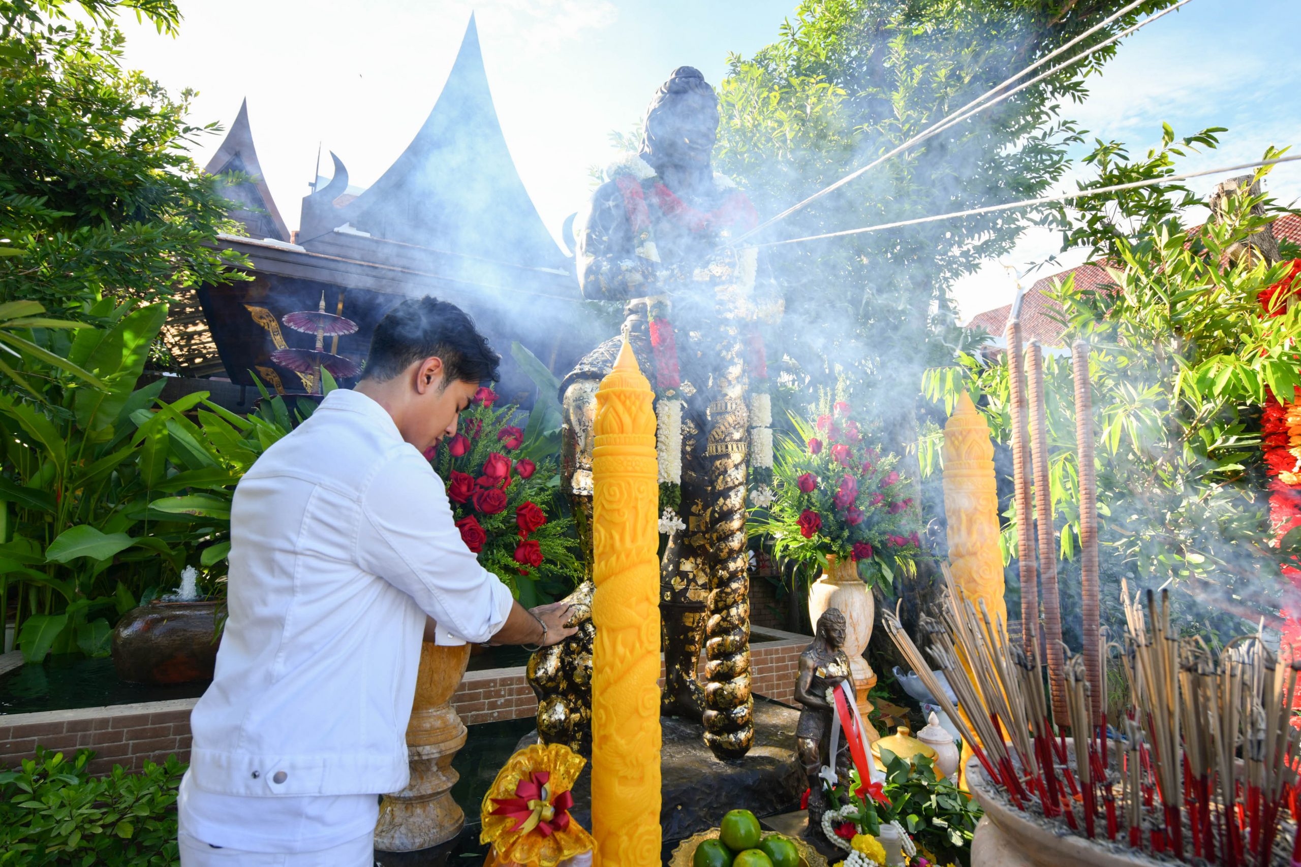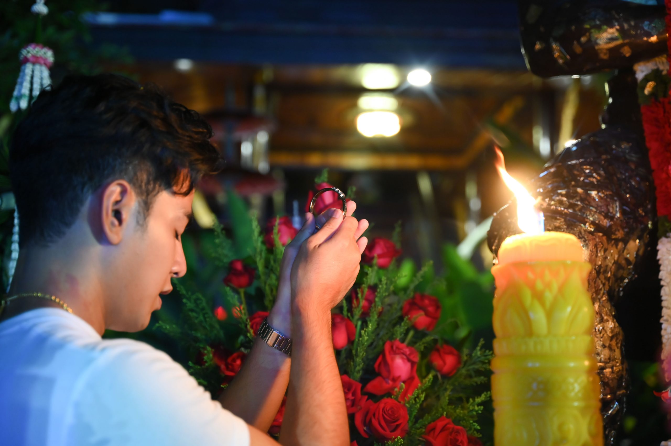 “ผมเป็นสายมูอยู่แล้วบูชาองค์เทพหลายๆ องค์อยู่แล้ว และผมก็บูชาองค์ปู่ท้าวเวสสุวรรณด้วย เราเห็นหลายๆ คนศรัทธาก็เลยบูชา ก็จะขอพรท่านมาตลอด และก็จะสวดมนต์องค์ปู่ทุกวัน ผมขอเรื่องงานก็จะสวดมนต์ขอท่าน แล้วก็ประสบความสำเร็จจริงๆ อย่างที่ตั้งใจเลยครับ ตอนนี้งานแน่นมากเลยครับ ที่กำลังออนแอร์อยู่ก็หมอลำซัมเมอร์ เรตติ้งดีมากเลยครับ และก็ยังมีงานละครที่ถ่ายทำอยู่อีก 3 เรื่อง ทั้งที่กำลังถ่ายทำและกำลังจะเปิดกล้องครับ เรียกว่าปังมากๆ เลยครับ ชีวิตมันดีขึ้นเรื่อยๆ อย่างที่เห็นเลย ก็ดีใจมากๆ เลยครับที่ได้มาร่วมงานในครั้งนี้ เรียกว่าไม่มาไม่ได้เพราะเราขอพรแล้วสำเร็จก็ต้องมา และก็ได้บูชากำไลมนต์ท้าวเวสสุวรรณกลับไปด้วย มันเป็นความเชื่อความศรัทธาของเรา เราไหว้แล้วดีเราก็จะไหว้ต่อไปครับ เรื่องนี้ต้องพิสูจน์กันเองครับ”