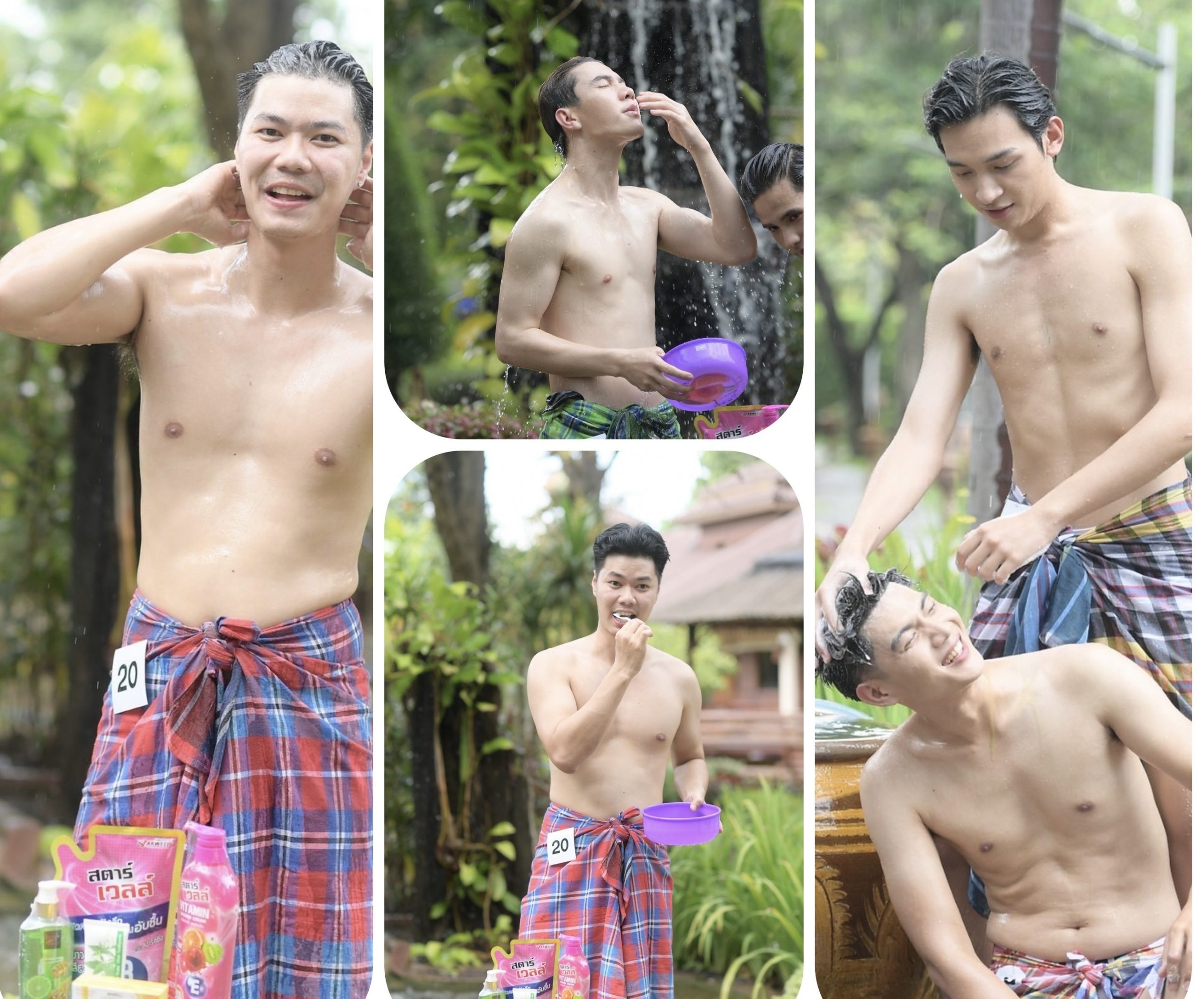 เมื่อท้องอิ่มพุงกางแล้ว ก็มีแรงมาร่วมกิจกรรม “CHAMING SHOWER” ณ วังรจนา โดยผู้เข้าประกวดทั้ง 77 หนุ่มต้องสวมผ้าขาวม้า ถอดเสื้อ ทาน้ำมันบนตัว โชว์หุ่นกัน เรียกว่า แซ่บระเบิดแซ่บ จนแทบอยากจะแทรกตัวลงไปเป็นน้ำมันกันเลยทีเดียว เด็ดเผ็ซ ทั้งกลุ่มที่อาบน้ำ กลุ่มถูสบู่ กลุ่มยาสระผมแต่ละกลุ่มงัดไม้เด็ดมาโชว์เรียกคะแนนความเด็ดสุดติ่ง