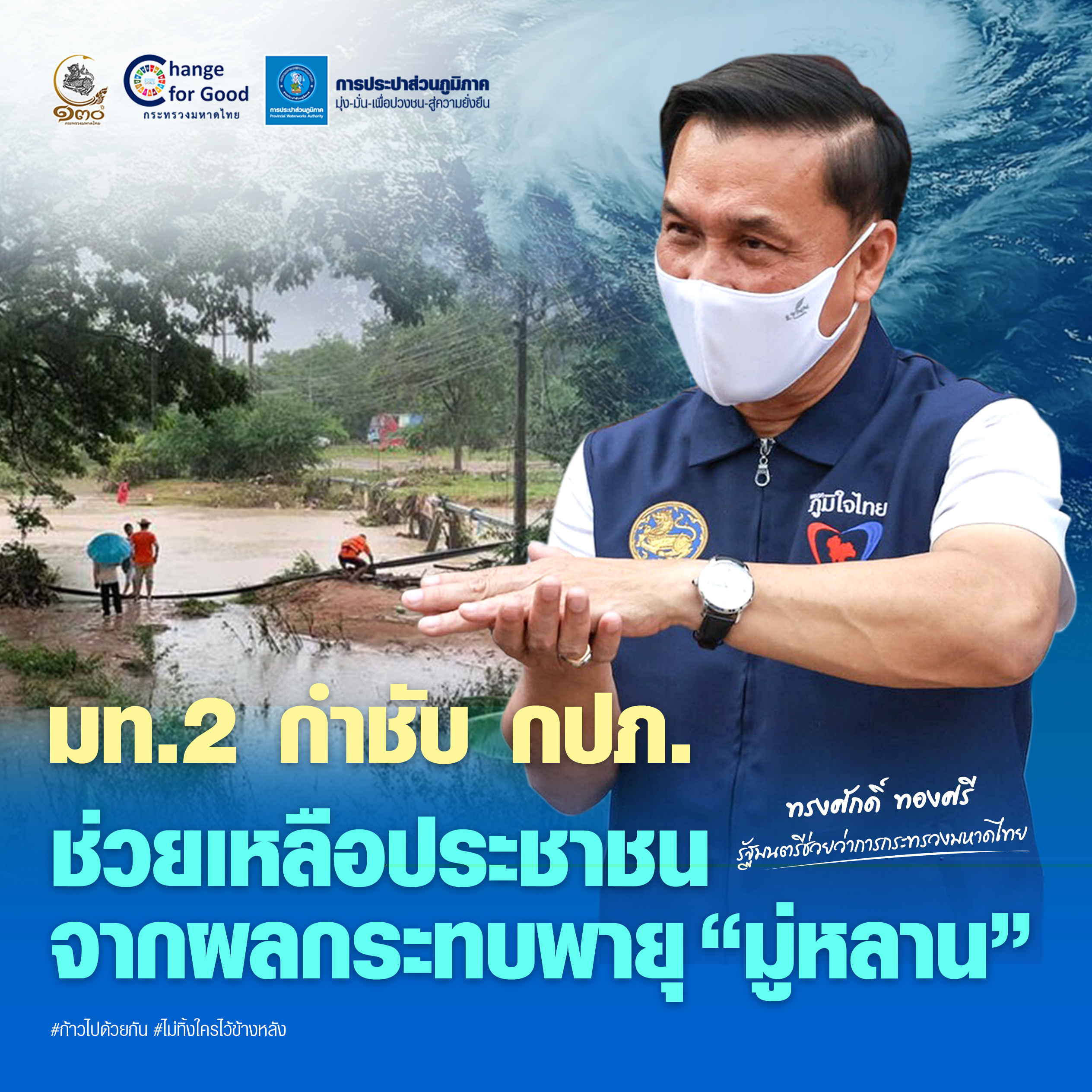 นายทรงศักดิ์ ทองศรี รัฐมนตรีช่วยว่าการกระทรวงมหาดไทย (มท.2) เปิดเผยว่า ตามประกาศกรมอุตุนิยมวิทยา พายุโซนร้อน “มู่หลาน” ได้อ่อนกำลังลงเป็นพายุดีเปรสชันบริเวณมณฑลยูนนานตอนใต้ ประเทศจีน เมียนมา ลาว และประเทศไทยตอนบนทำให้มีฝนตกหนักถึงหนักมากบางแห่งในภาคเหนือและภาคตะวันออกเฉียงเหนือ จึงกำชับ กปภ.สาขาในพื้นที่เตรียมความพร้อมระบบการผลิตและส่งจ่ายน้ำประปาเพื่อให้บริการแก่ประชาชนได้อย่างต่อเนื่องและเพียงพอ รวมทั้ง ตรวจสอบความมั่นคงแข็งแรงของคันสระพักน้ำดิบและสระกักเก็บน้ำดิบเพื่อให้สามารถรองรับกรณีฝนตกหนักหรือน้ำไหลเข้าเป็นปริมาณมาก และเฝ้าระวังสถานการณ์ภัยธรมชาติ หรือภัยพิบัติต่าง ๆ เพื่อสร้างความมั่นใจให้ประชาชนสามารถอุปโภคบริโภคน้ำประปา สะอาด ปลอดภัย ได้มาตรฐาน ตลอดจนแนะวิธีการป้องกันตรวจสอบดูแลระบบประปาภายในบ้านหลังจากเหตุน้ำท่วมลดลง ทั้งนี้ กปภ. ขอความร่วมมือจากประชาชนตรวจสอบความเสียหายของระบบประปาภายในบ้านเพื่อป้องกันค่าใช้จ่ายจากค่าน้ำที่สูงผิดปกติและไม่ต้องสูญเสียน้ำไปอย่างเปล่าประโยชน์